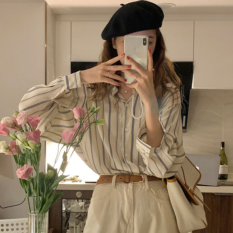 | nameOriginal | Long Sleeve Striped Shirt Women's Early Spring Autumn Design Sense Niche Shirt 2021 New Retro Hong Kong Style Top Clothes |