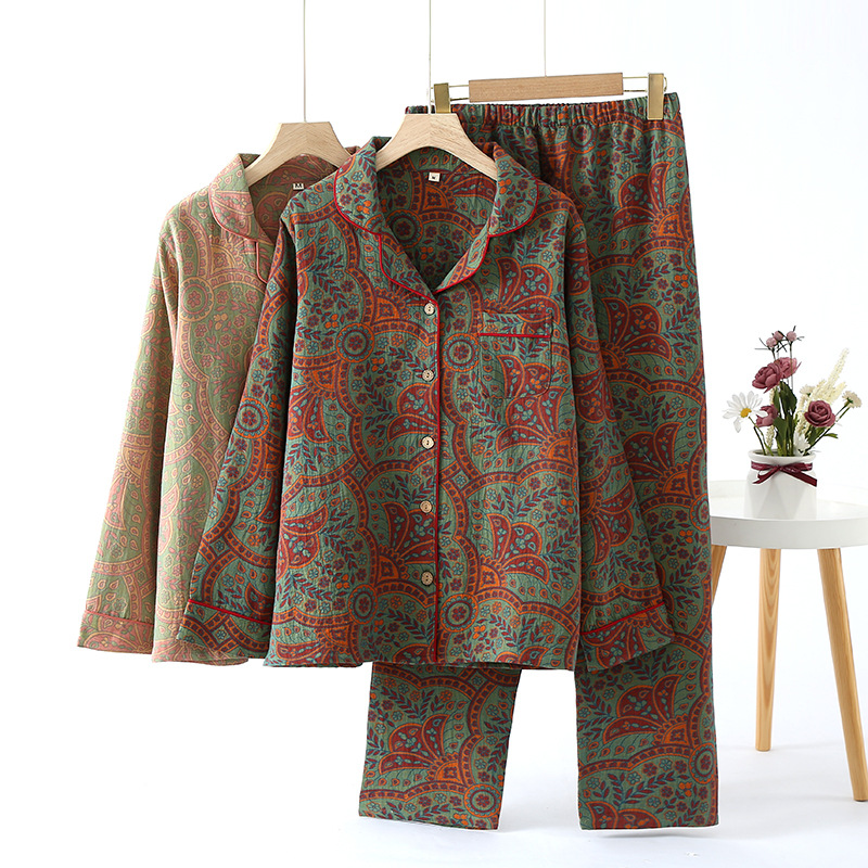 | nameOriginal | Long Sleeve Trousers Pajamas Spring and Autumn Ethnic Style Printed Women's Thin Pure Cotton Double Gauze Cardigan Home Clothes |