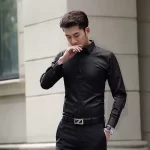 | nameOriginal | Long-sleeved casual black bottoming white shirt for work |