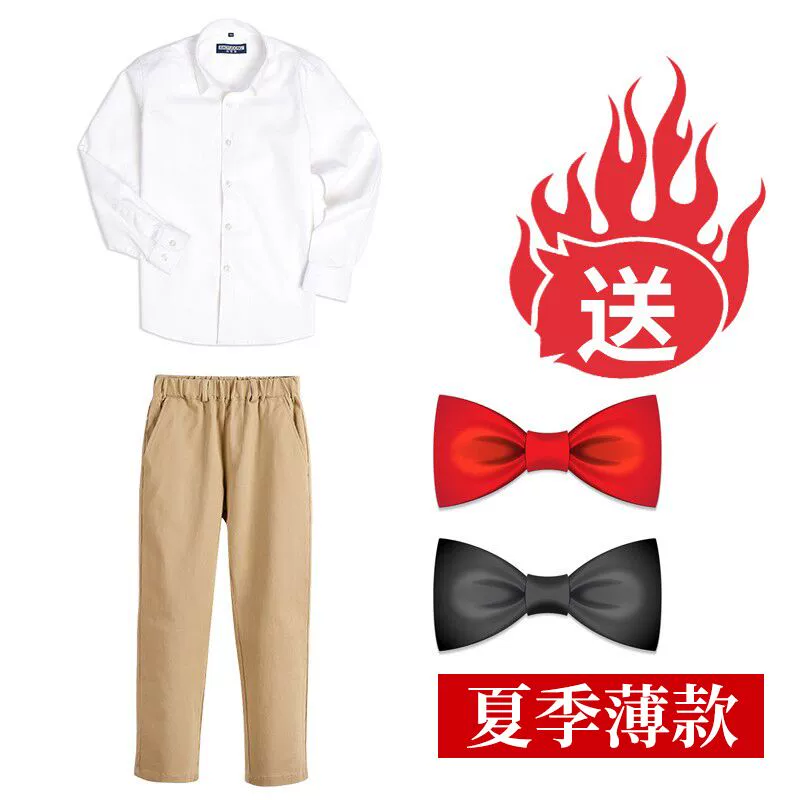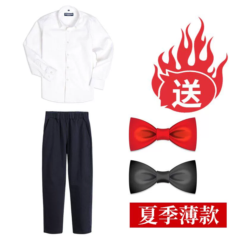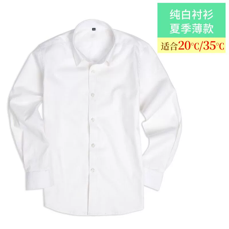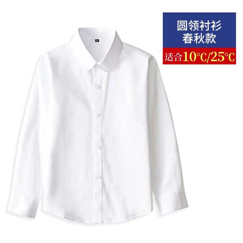 | nameOriginal | Long-sleeved cotton summer primary school uniform white shirt |