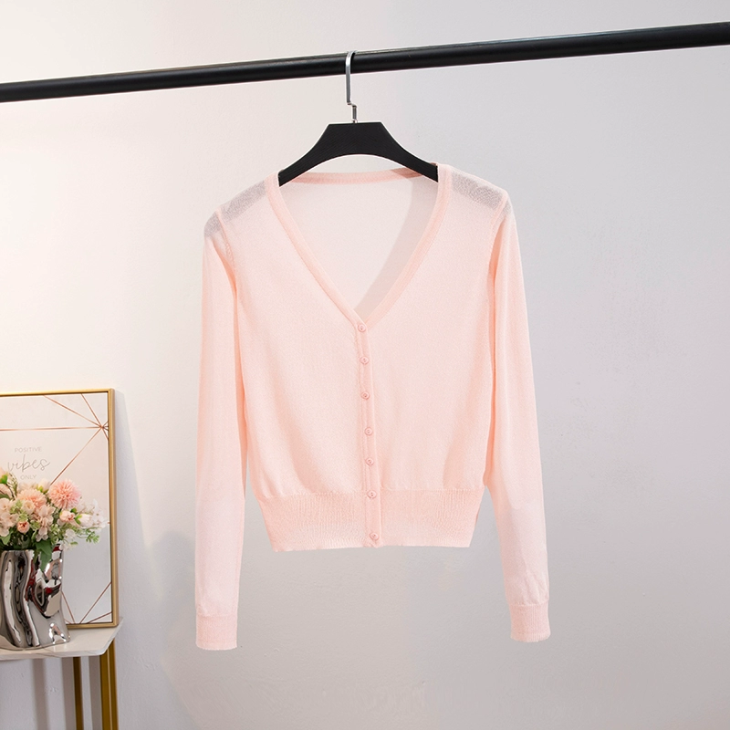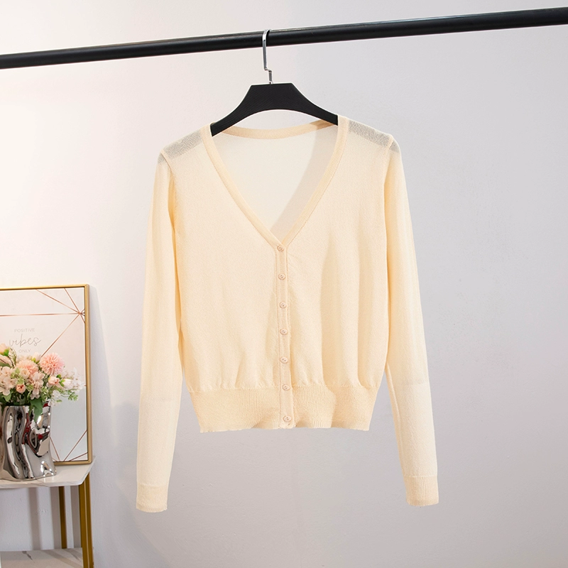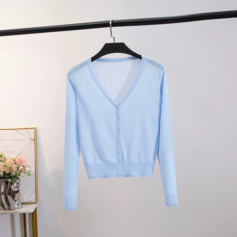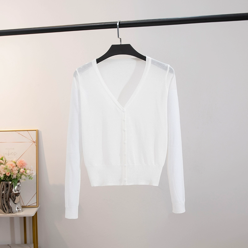 | nameOriginal | Long-sleeved ice silk v-neck cardigan and shawl with straight hair and skirt |