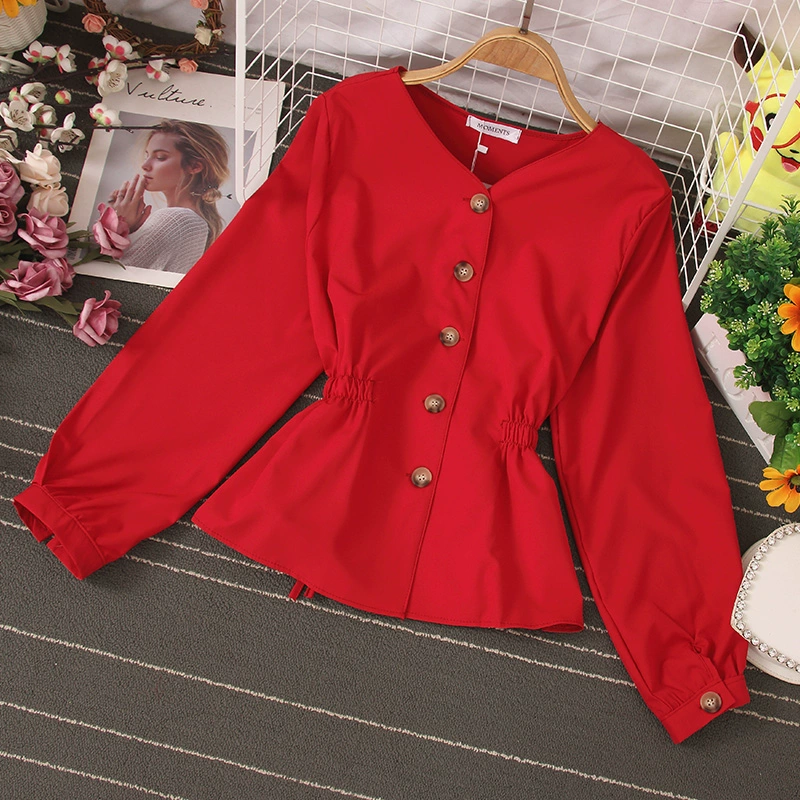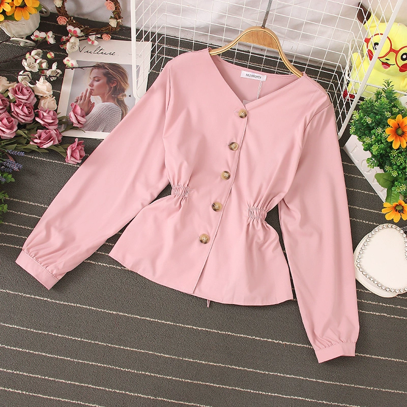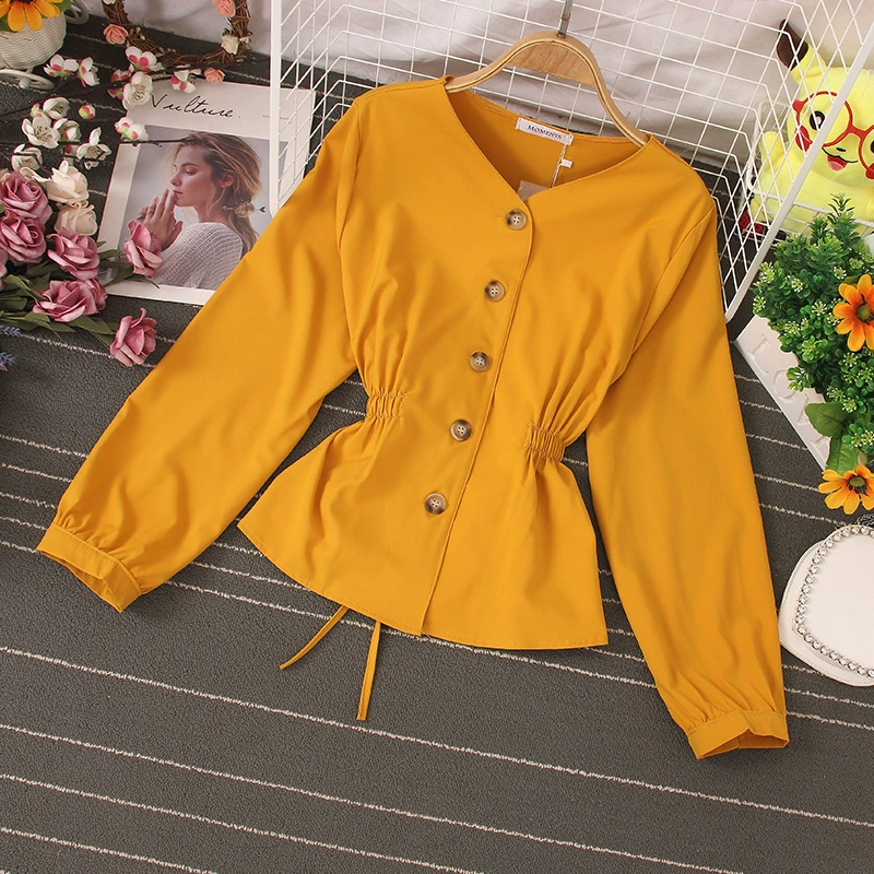 | nameOriginal | Long-sleeved Korean style lace-up waist slimming buttoned shirt |