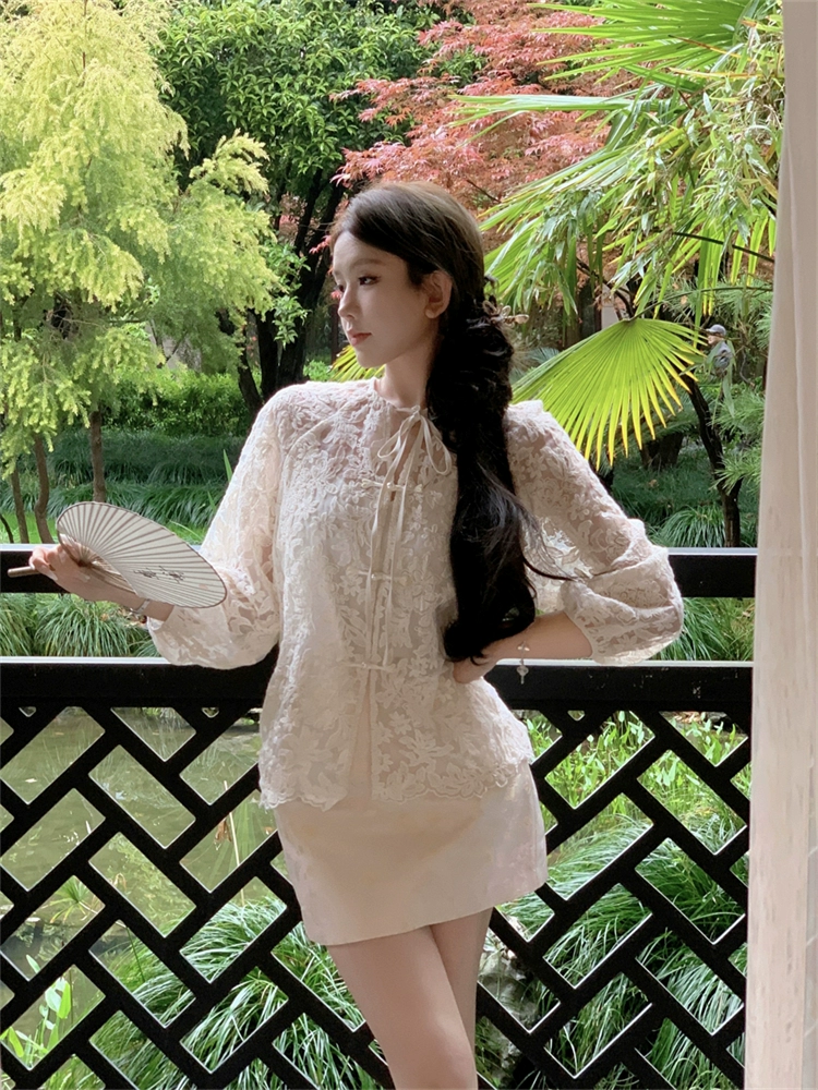 | nameOriginal | Long-sleeved loose cardigan suspender two-piece set with floral embroidery |