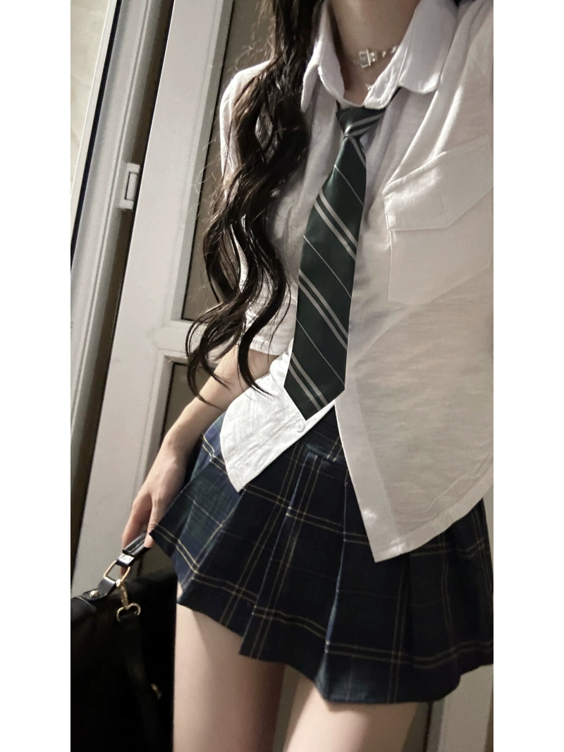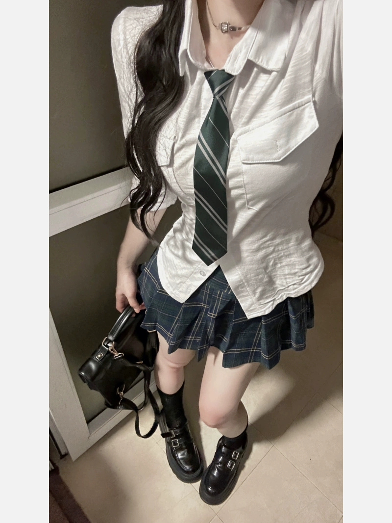 | nameOriginal | Long-sleeved shirt plaid pleated two-piece set jk uniform |