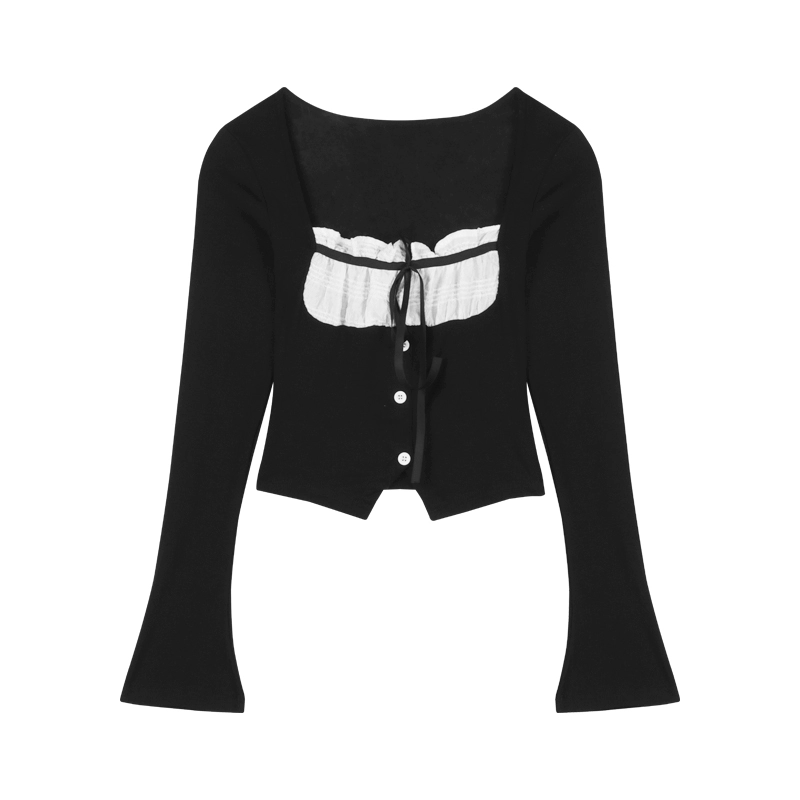 Long-sleeved slim fit black and white contrasting top T-shirt