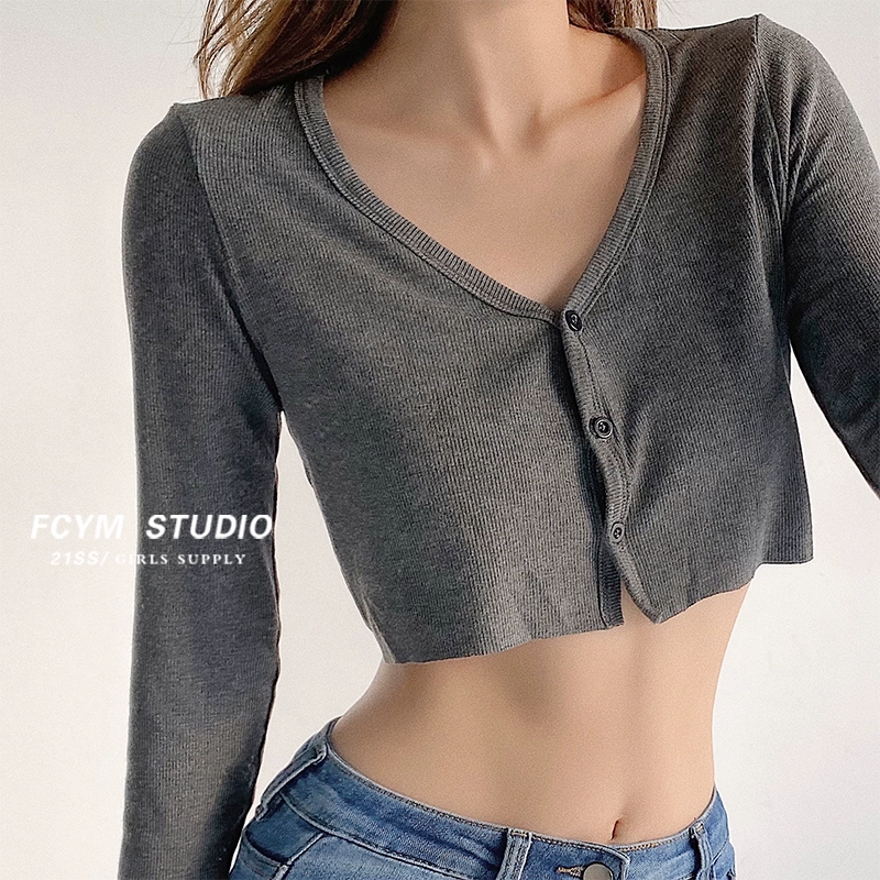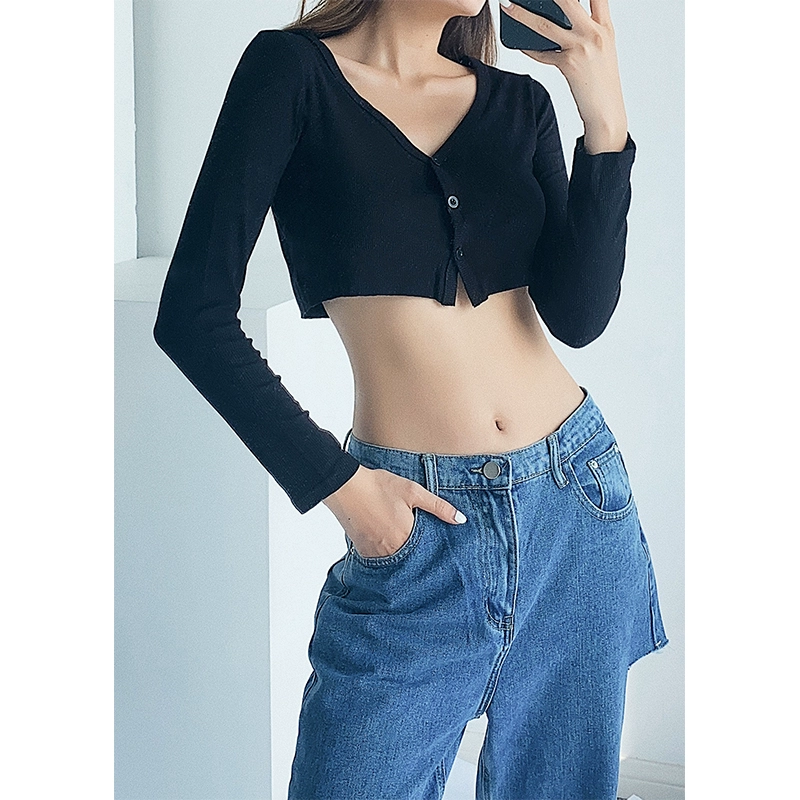 | nameOriginal | Long-sleeved slim-fit single-breasted ribbed T-shirt knitted cardigan |