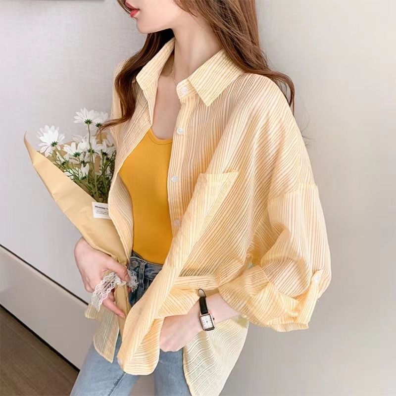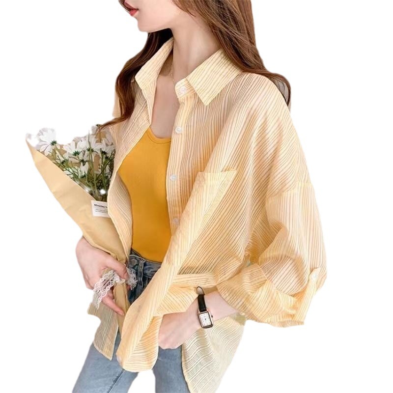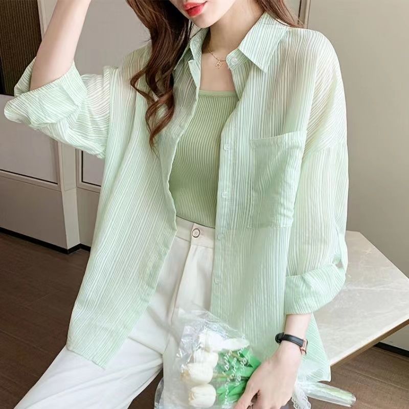 Long-sleeved striped sunscreen women’s spring and summer 2022 new thin light chiffon shirt long cardigan coat
