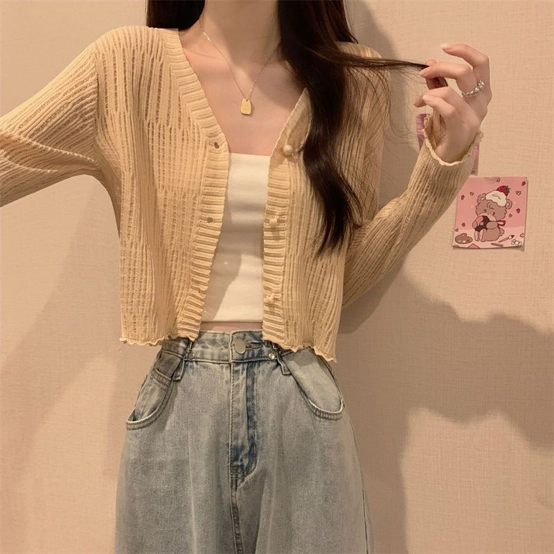 Long-Sleeved Sunscreen Knitted Cardigan Women’s Summer Western Style Ice Silk Slimming Short Top Thin Outer Wear Air Conditioning Blouse Jacket