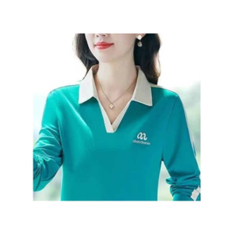 | nameOriginal | Long-sleeved T-shirt women's lapel spring and autumn 2024 new middle-aged mother top women's slim base shirt polo collar |