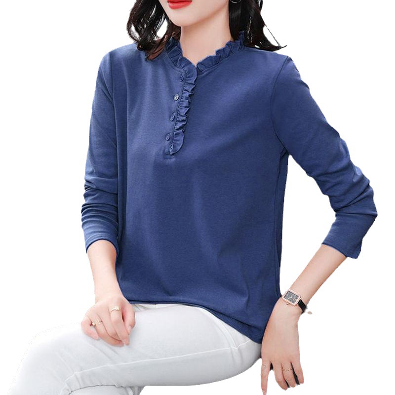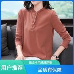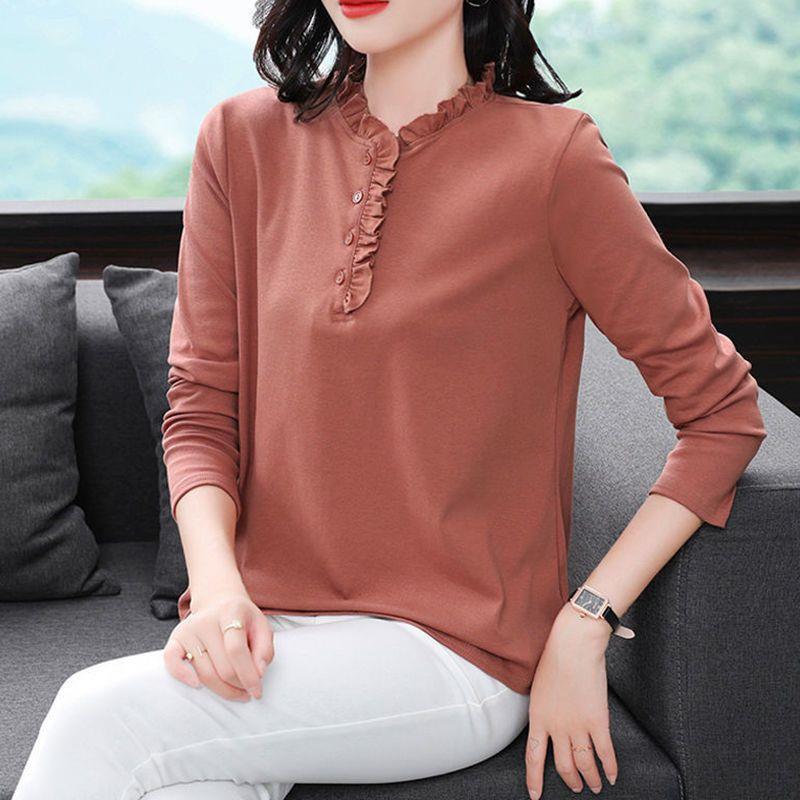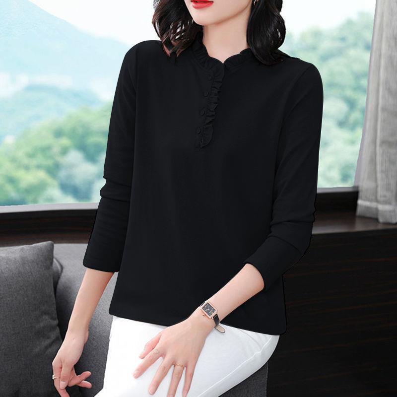 Long-sleeved Top Spring and Autumn T-shirt Women’s Wood Ear Collar Middle-aged Mother Loose plus size Collar New Stylike Base Shirt