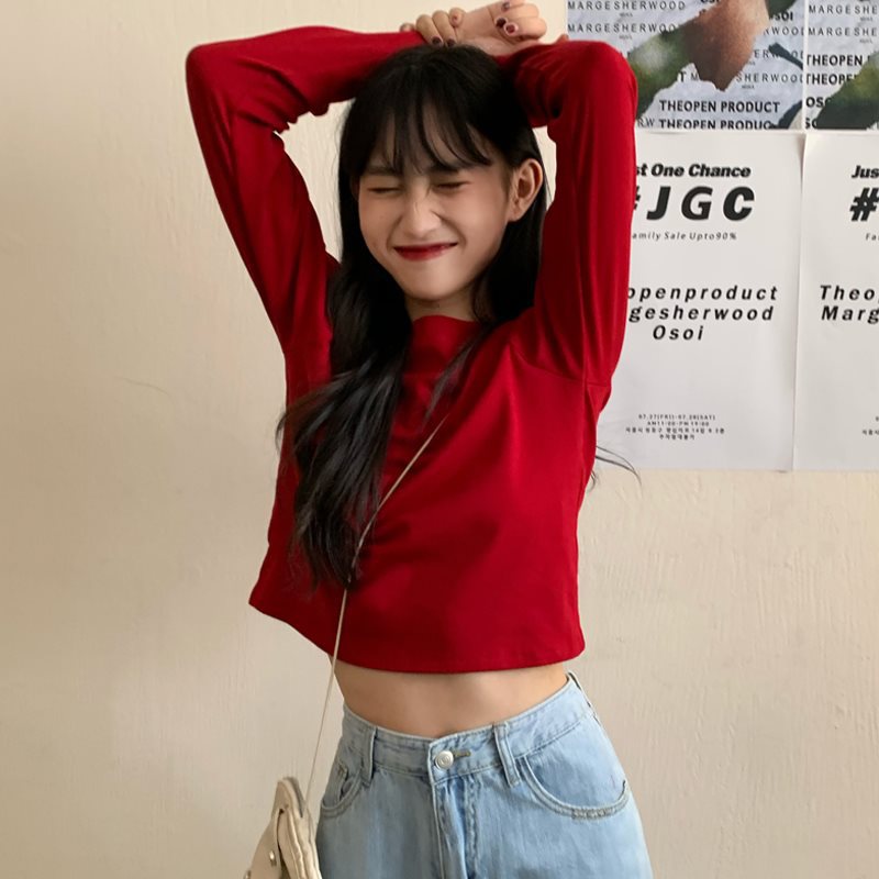 | nameOriginal | Long-sleeved top T-shirt unique super good-looking 2024 new early spring women's summer bottoming shirt short small |