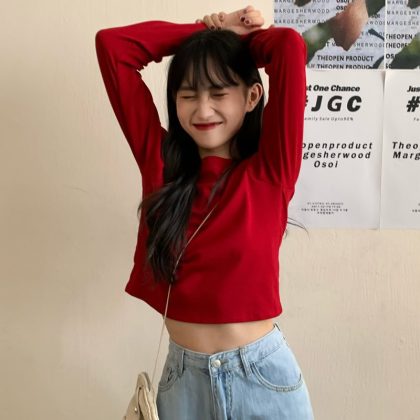 | nameOriginal | Long-sleeved top T-shirt unique super good-looking 2024 new early spring women's summer bottoming shirt short small |