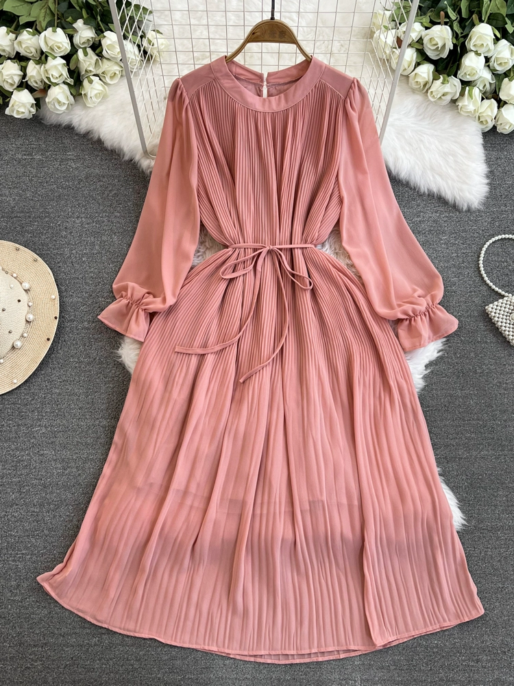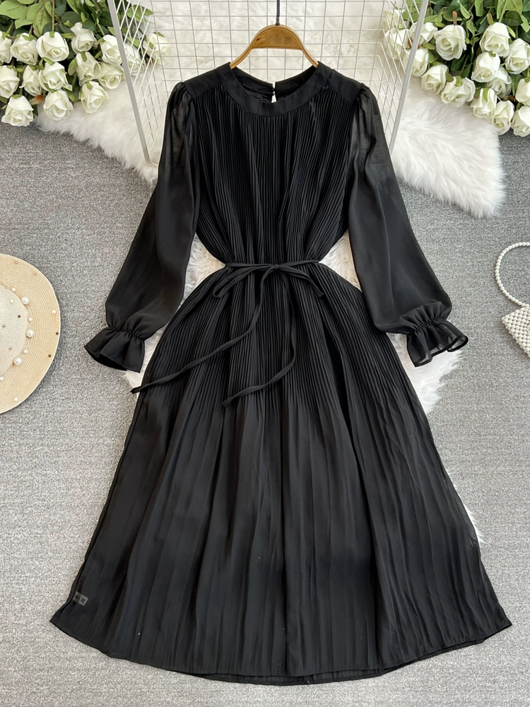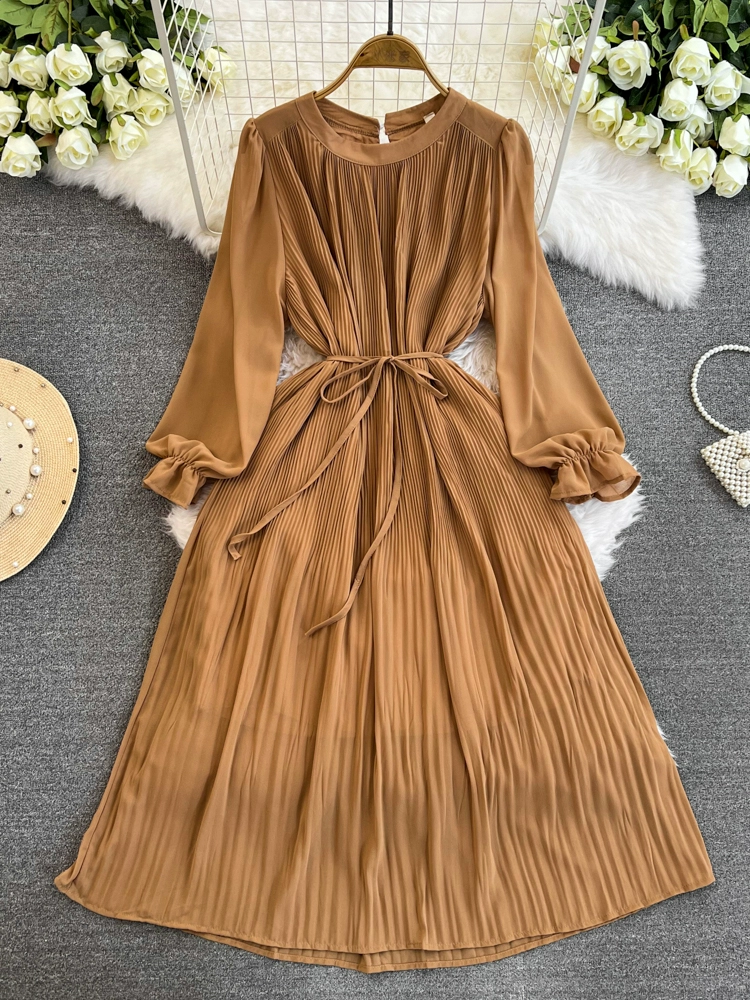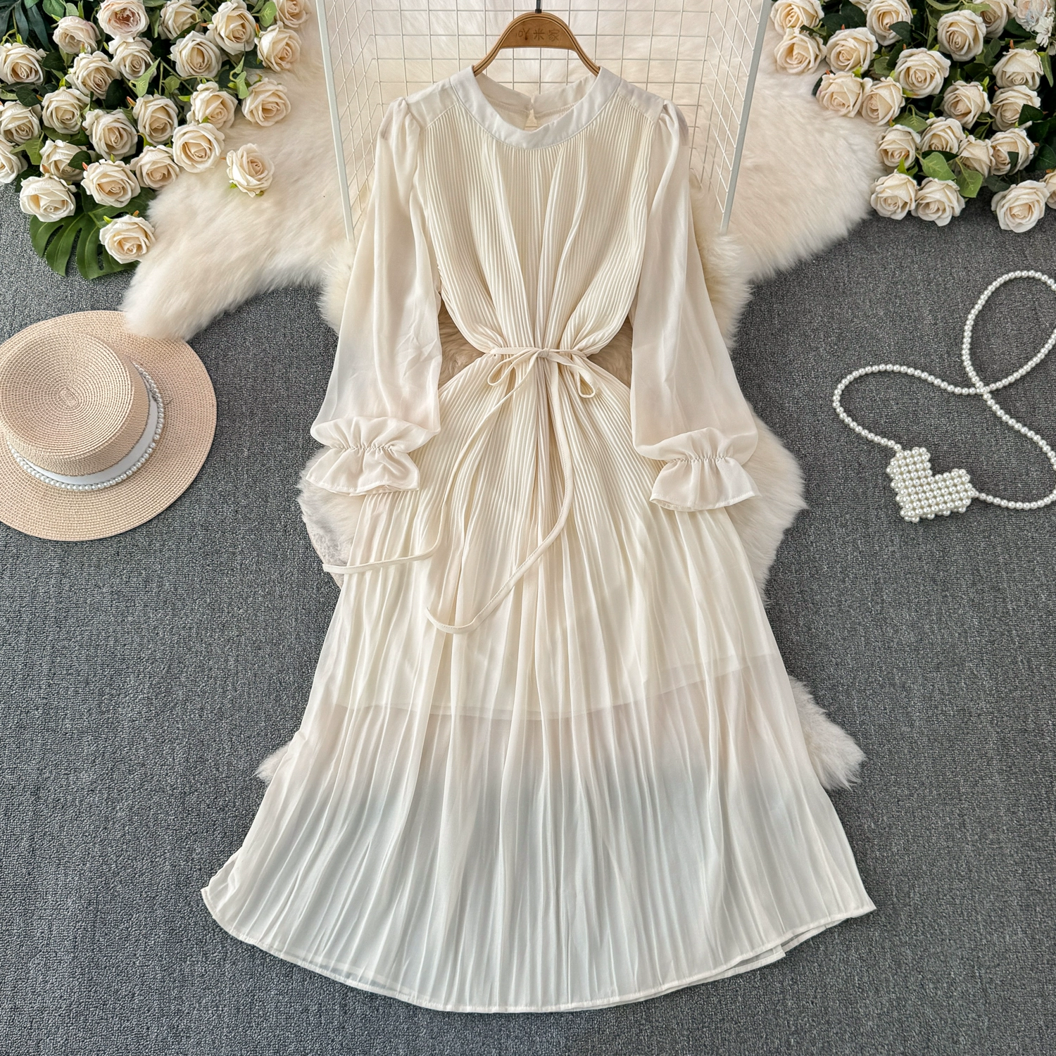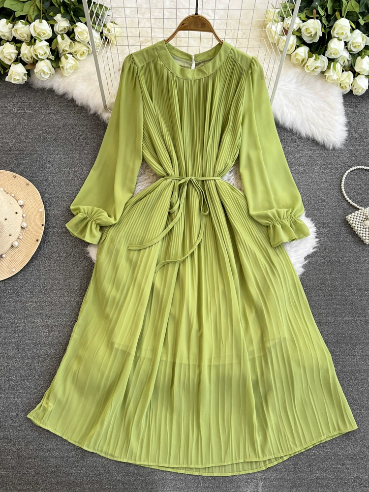 | nameOriginal | Long-sleeved waist slimming forest chiffon dress |
