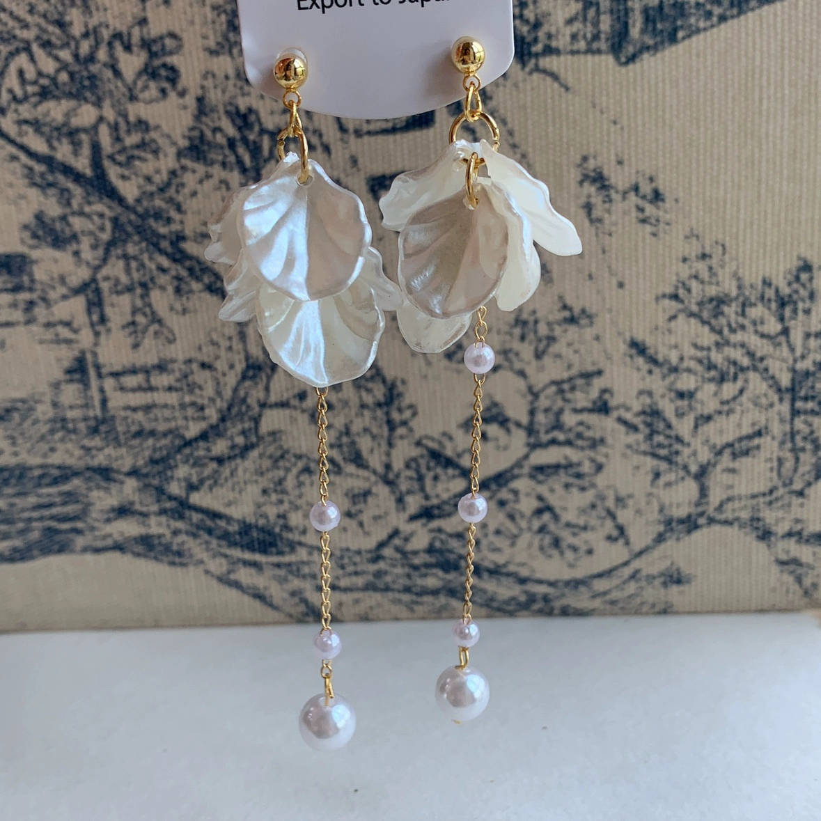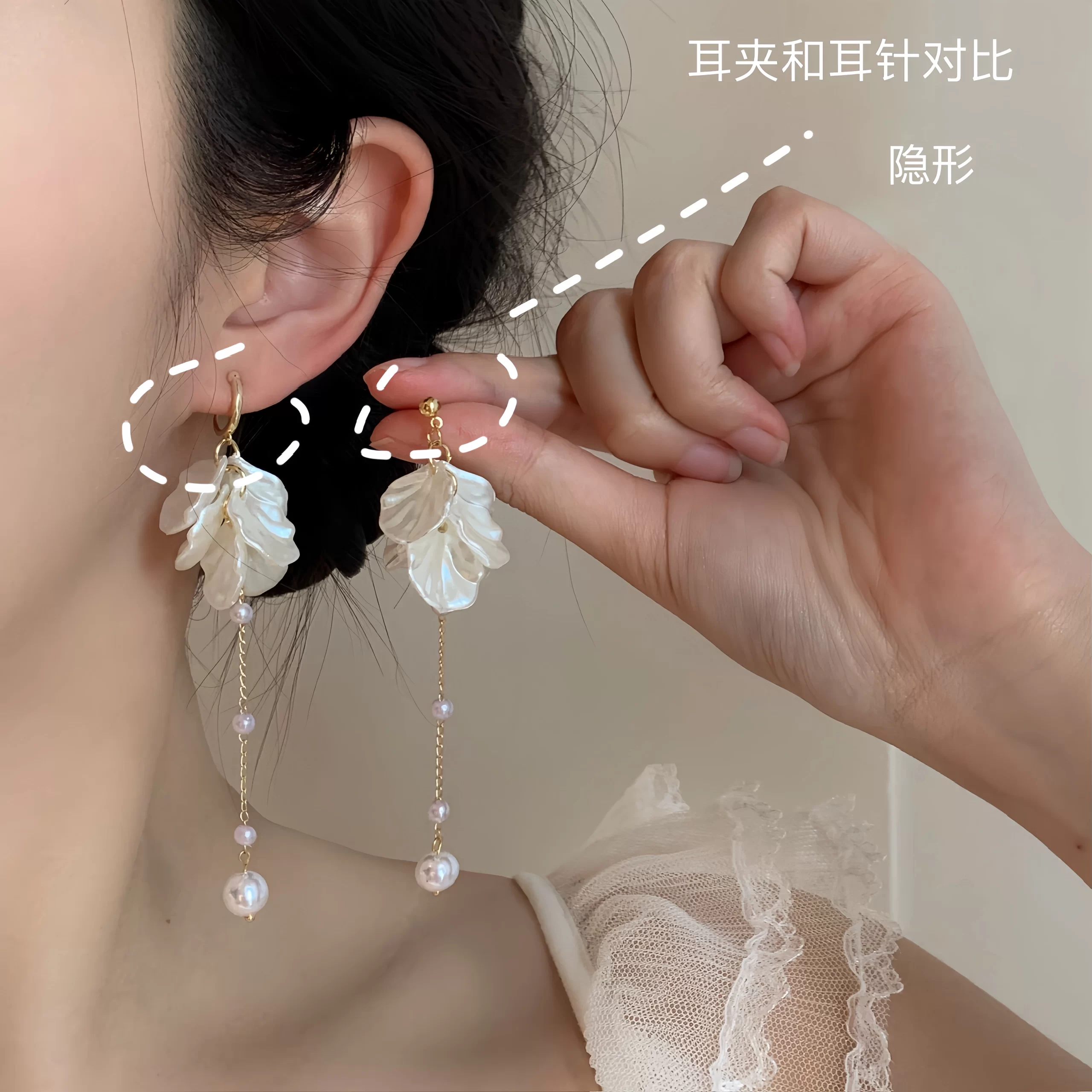 | nameOriginal | Long white petal mosquito coil ear clip tassel shell |