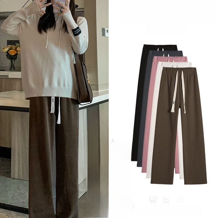 | nameOriginal | Long wide-leg pants for women autumn and winter New draping high waist straight pants casual fleece-lined thick corduroy trousers |