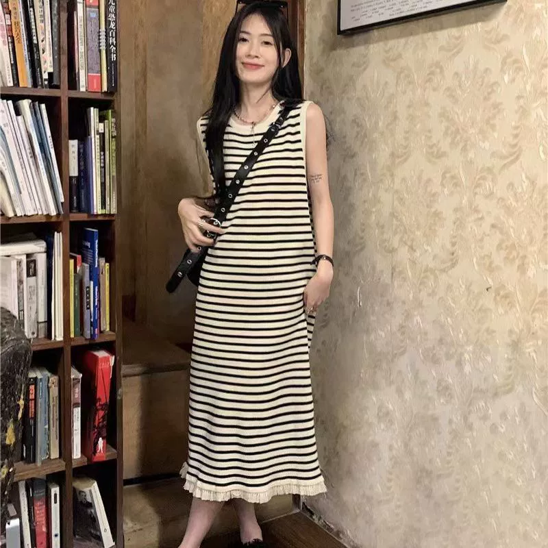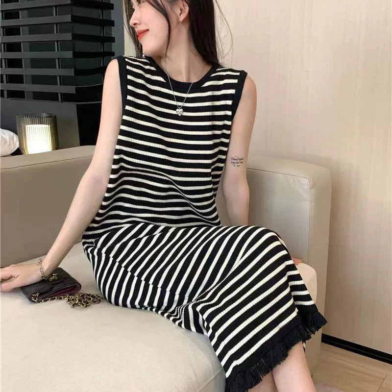 | nameOriginal | Long women's summer classic black and white knitted a-line skirt |