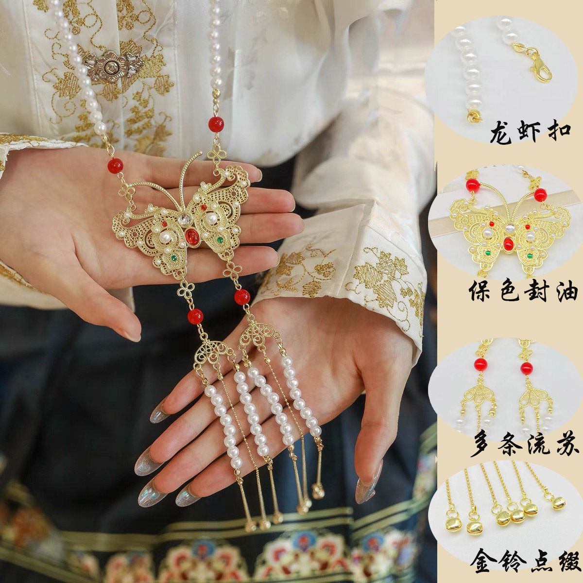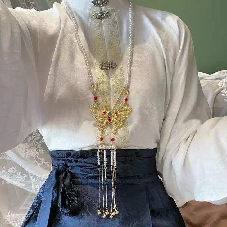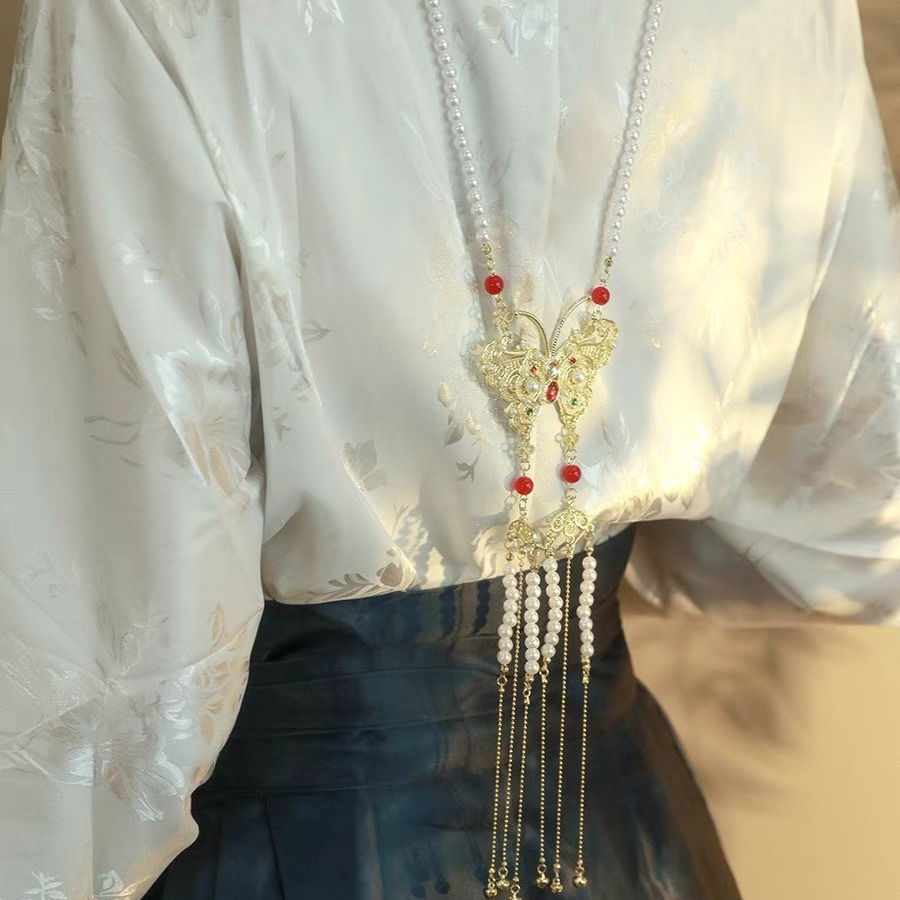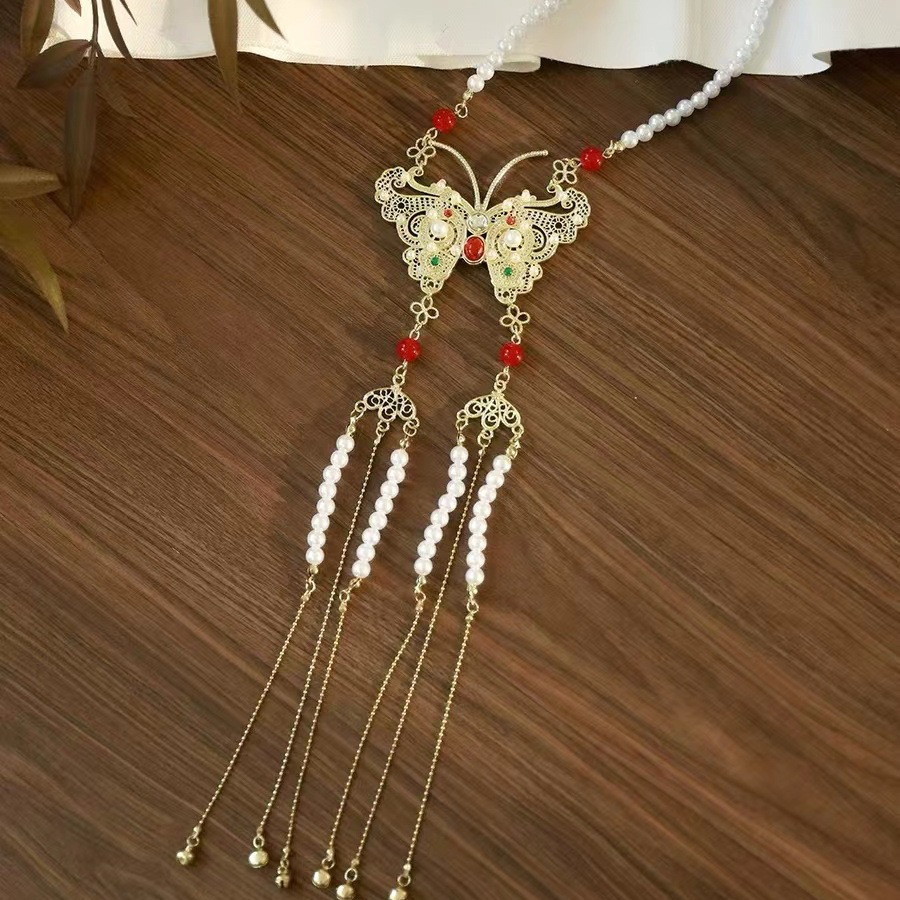 Long wreaths all back cloud long tassel butterfly necklace horse skirt top accessories antique Chinese clothing peace lock necklace