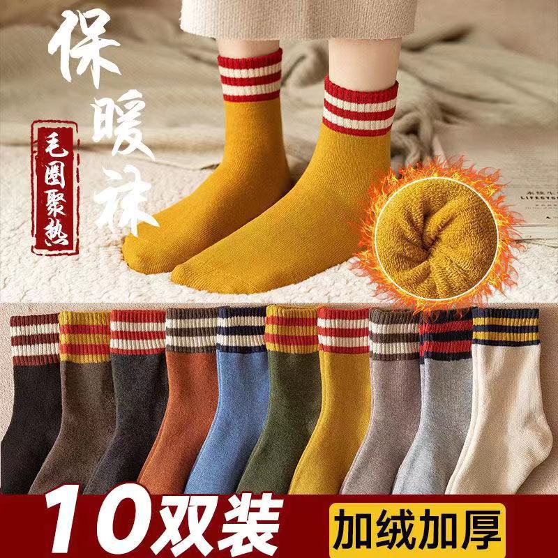 | nameOriginal | LookSocks bear embroidery thickened solid color mid-calf socks cashmere women's socks autumn and winter warm stockings pile socks |