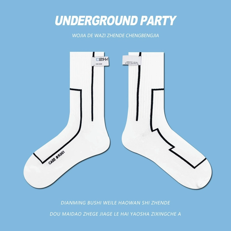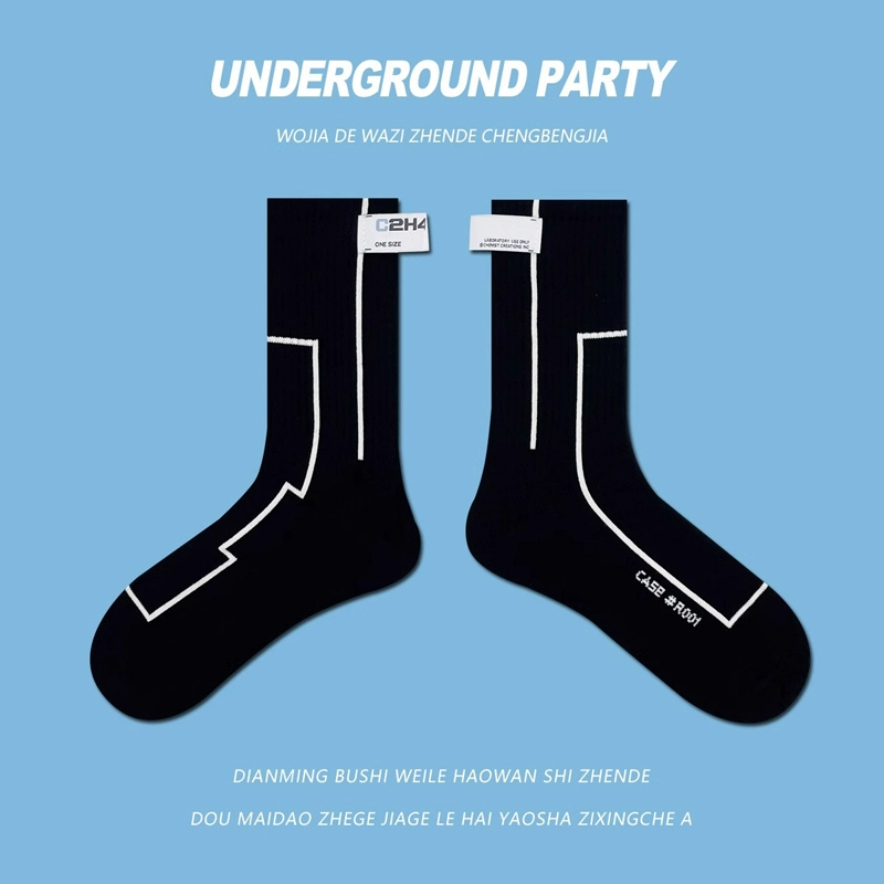 | nameOriginal | LookSocks heel C2 letter cloth label black and white line socks men and women street ins trend workwear wind tube socks |