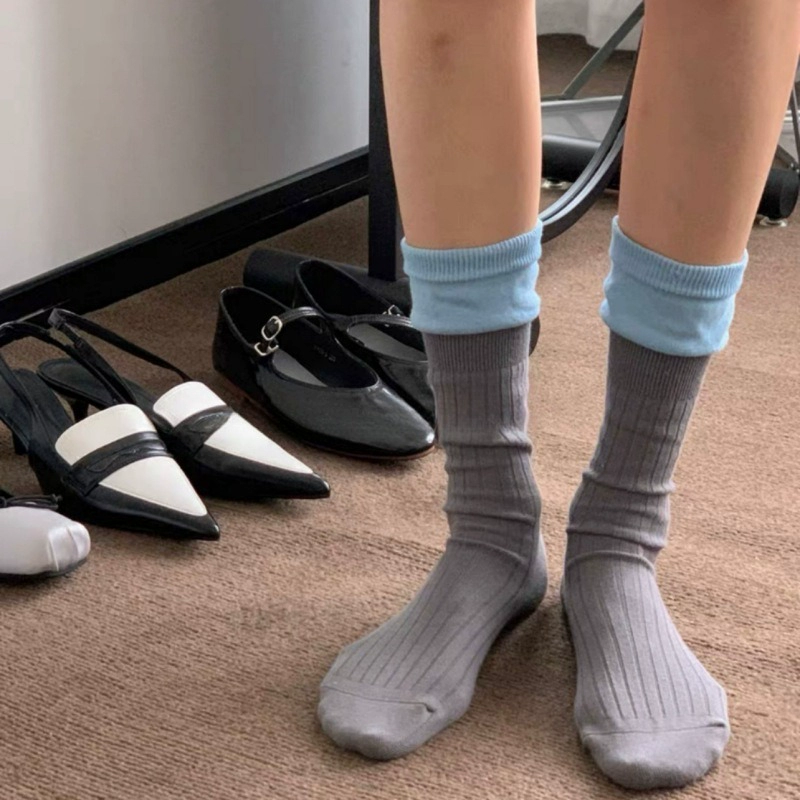 | nameOriginal | LookSocks Korean designer two-color splicing mid-calf socks for women fake two-piece contrasting socks pure cotton trendy socks |