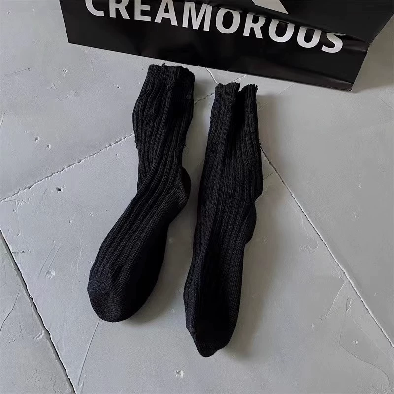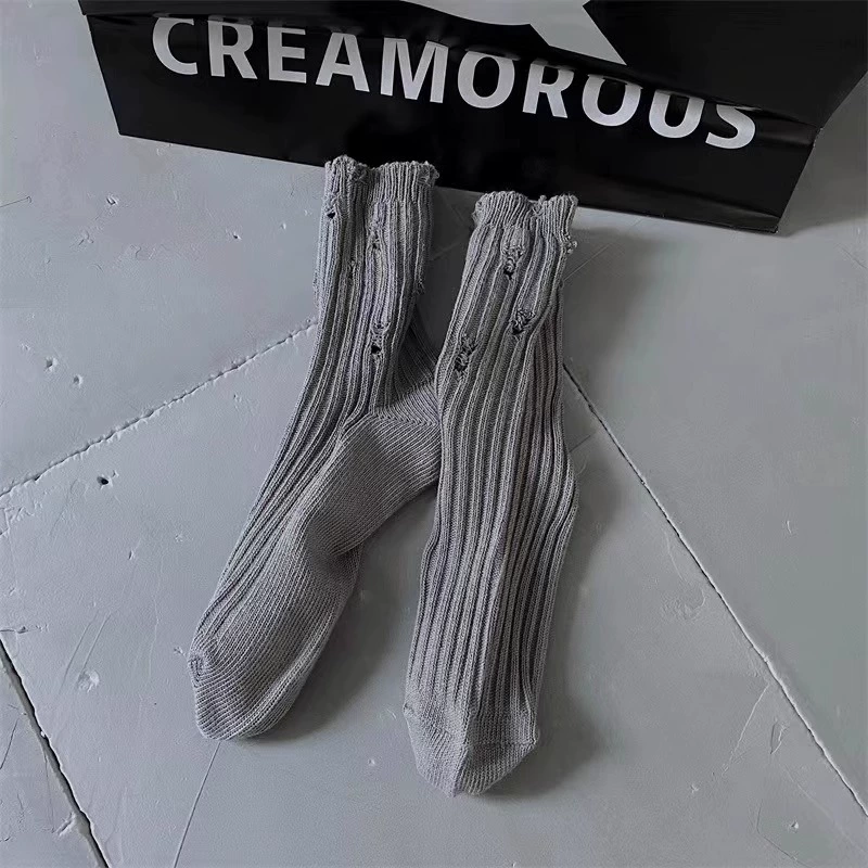 | nameOriginal | LookSocks personalized ripped beggar socks solid color retro distressed trendy socks street girls niche mid-calf stockings |