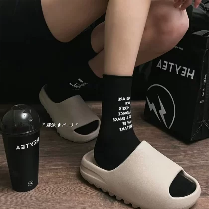 | nameOriginal | LookSocks printed black and white letters pile socks for men and women internet celebrity trendy socks hot stamped English medium tube socks pure cotton |