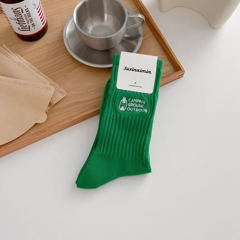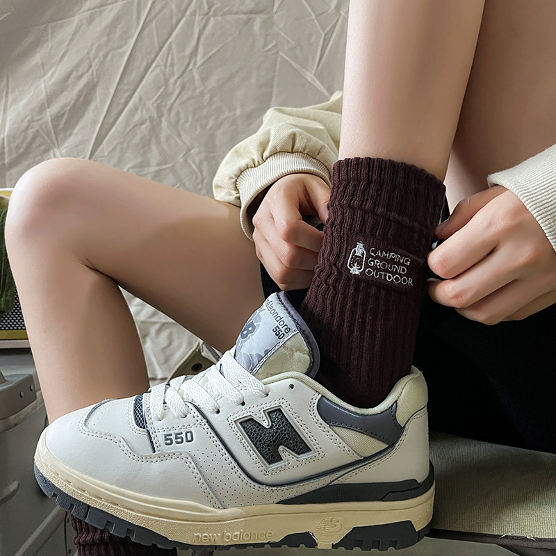| nameOriginal | LookSocks retro workwear style camping oil lamp mid-calf socks trendy personalized embroidered letters pure cotton pile stockings |