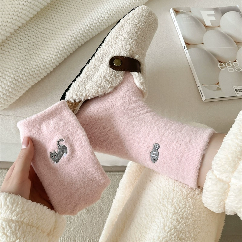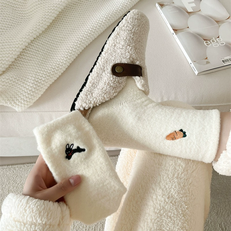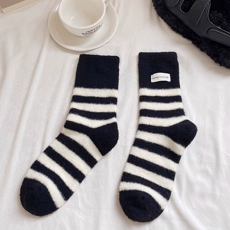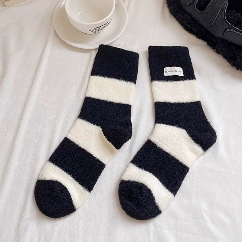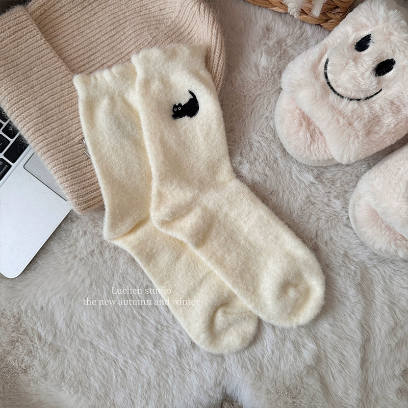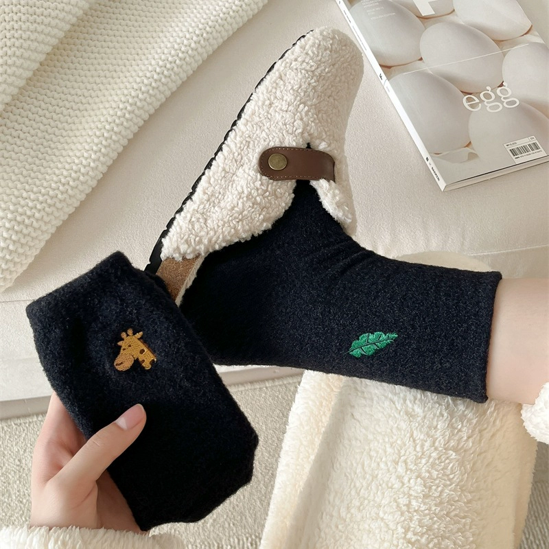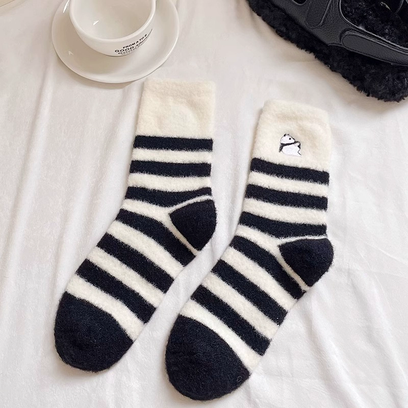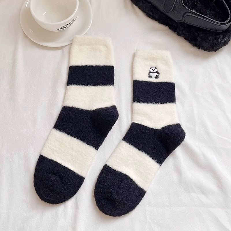 LookSocks thickened warm Australian velvet cute panda embroidered striped socks solid color simple niche home socks