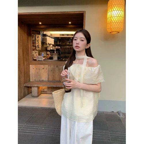 | nameOriginal | Loose and chic short one-shoulder shirt with ruffles |