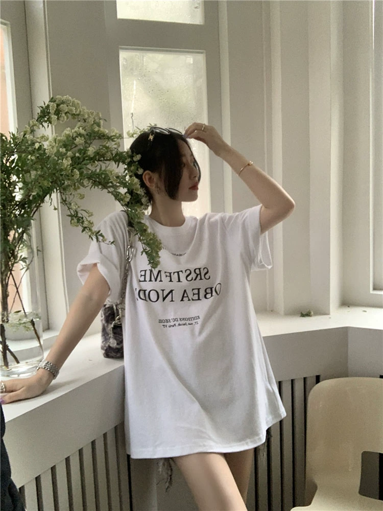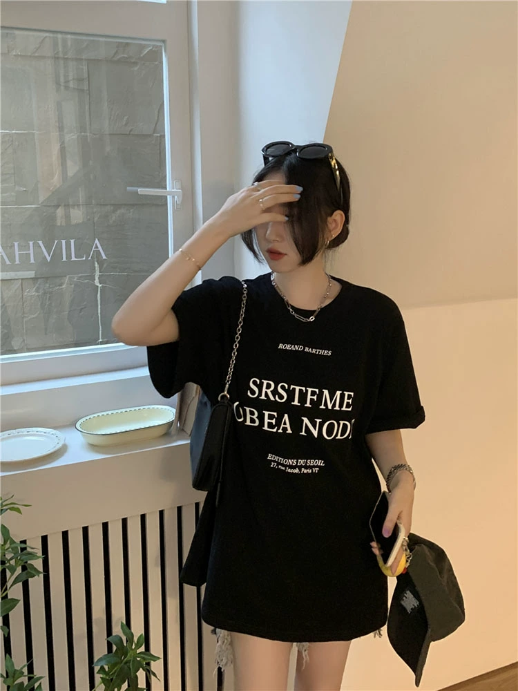 Loose and slim casual printed short-sleeved T-shirt with letters
