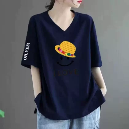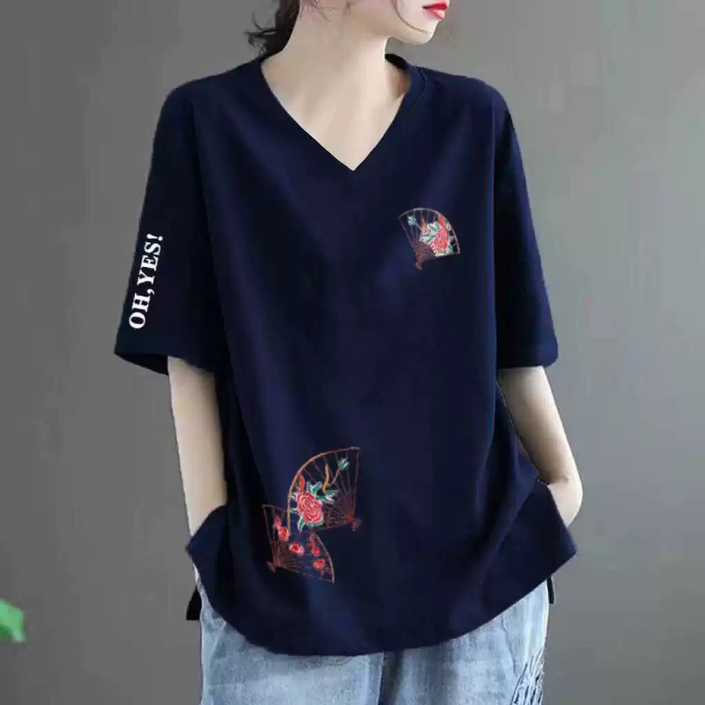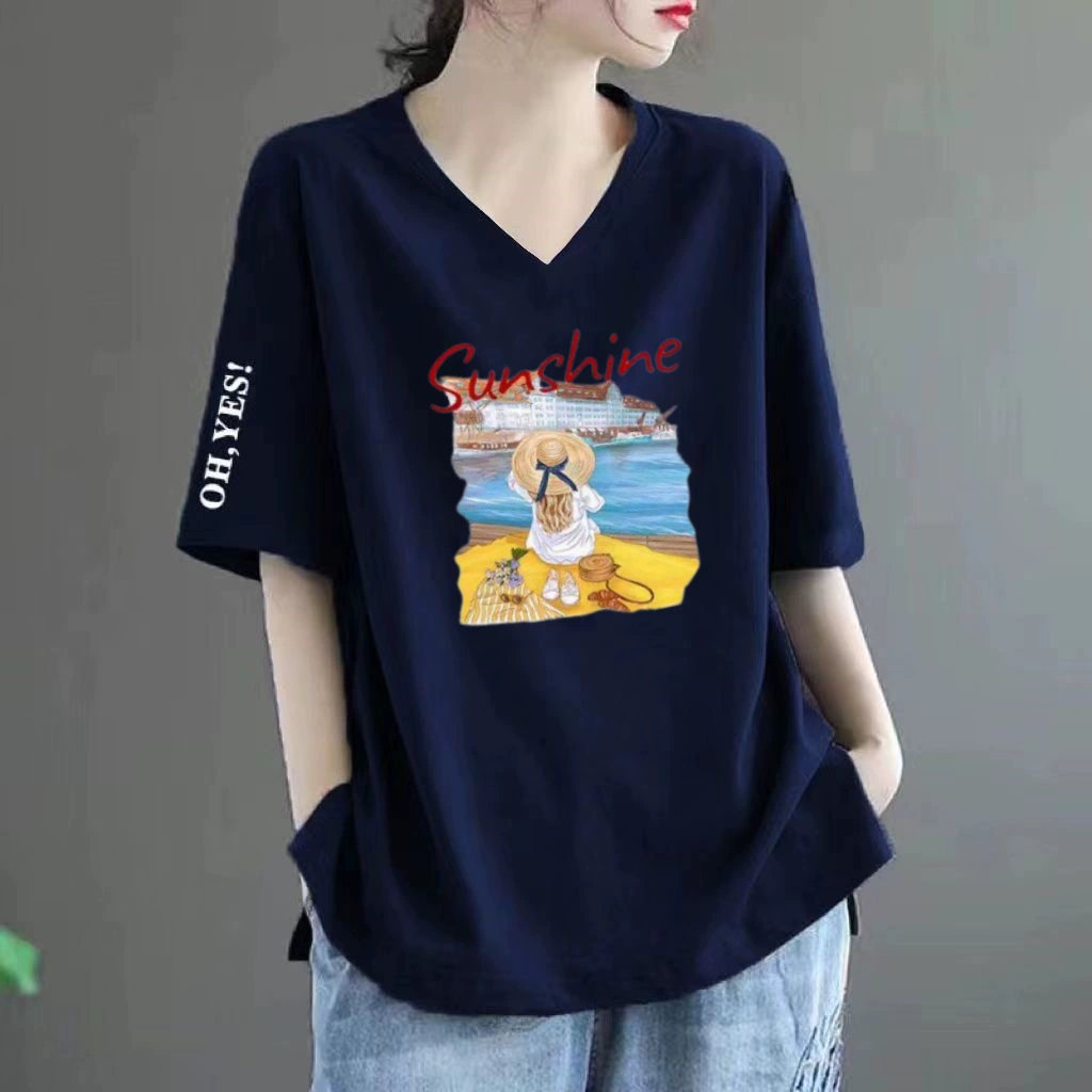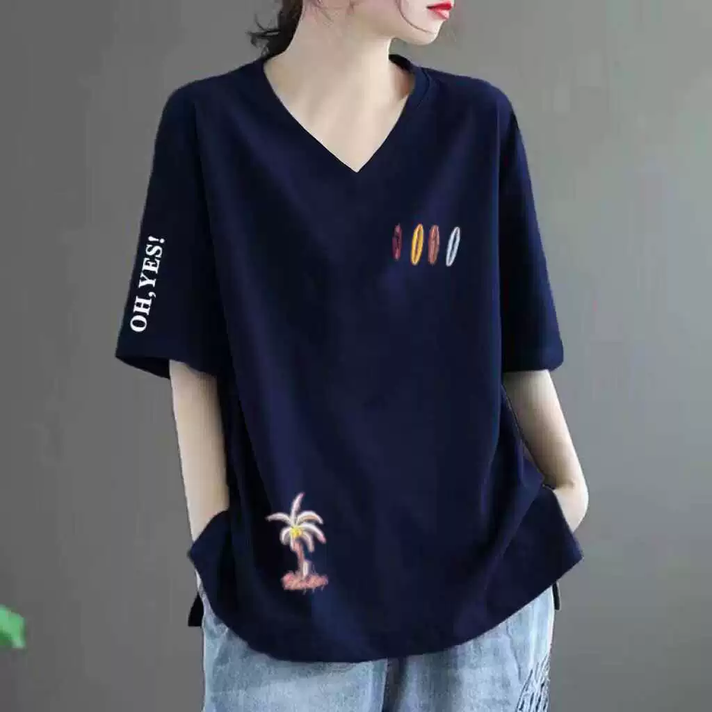 Loose fat MM belly-covering print to make it look slim and short-sleeved T-shirt