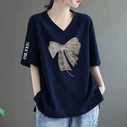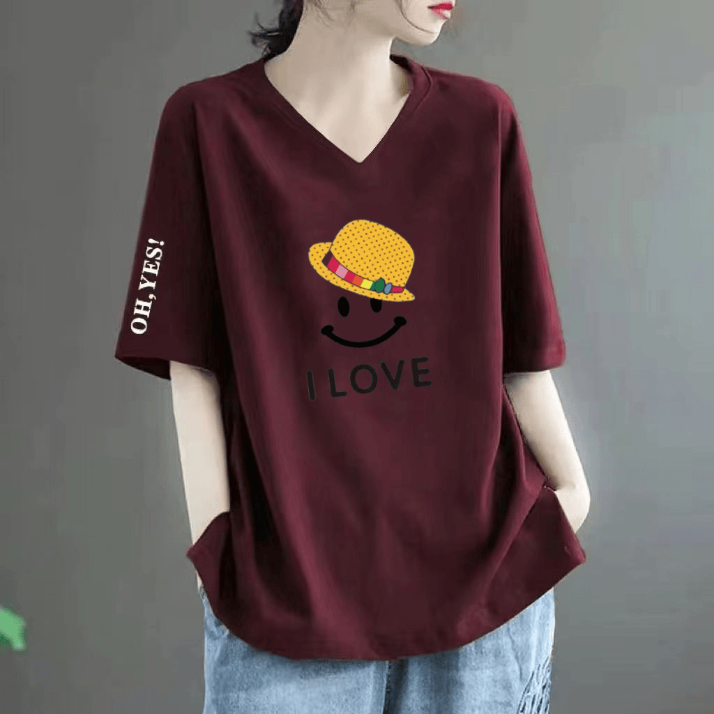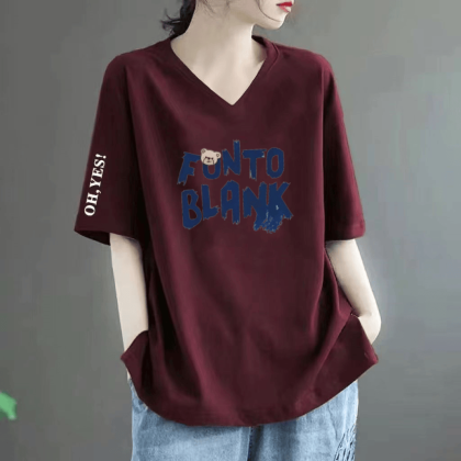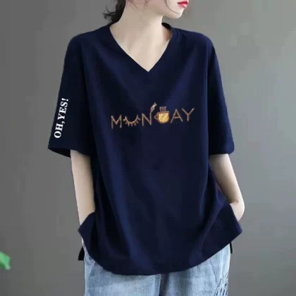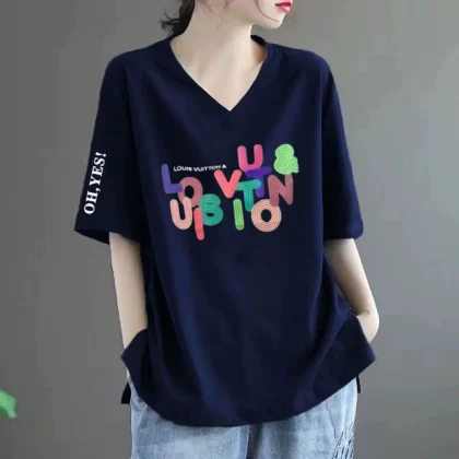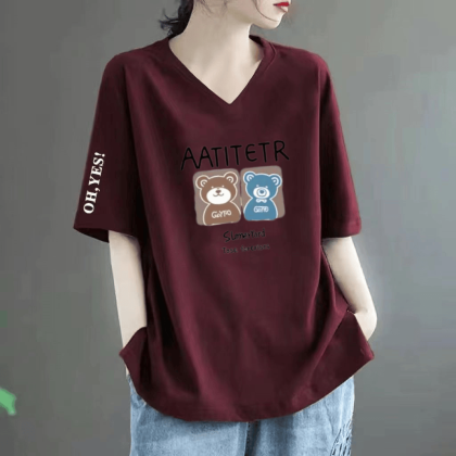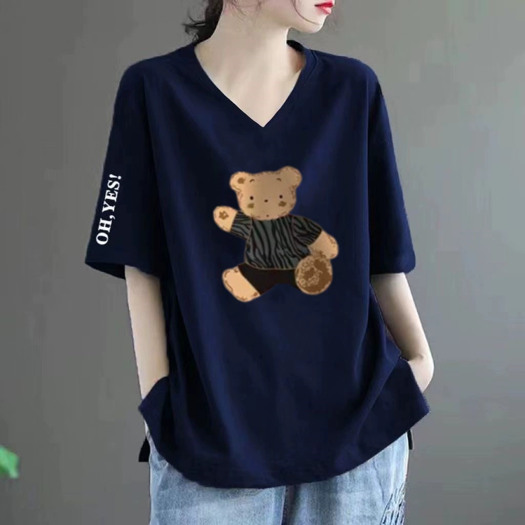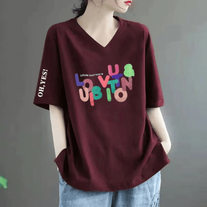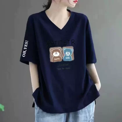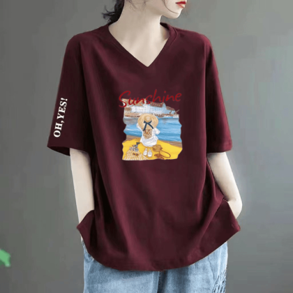 Loose fat MM belly-covering print to make it look slim and short-sleeved T-shirt
