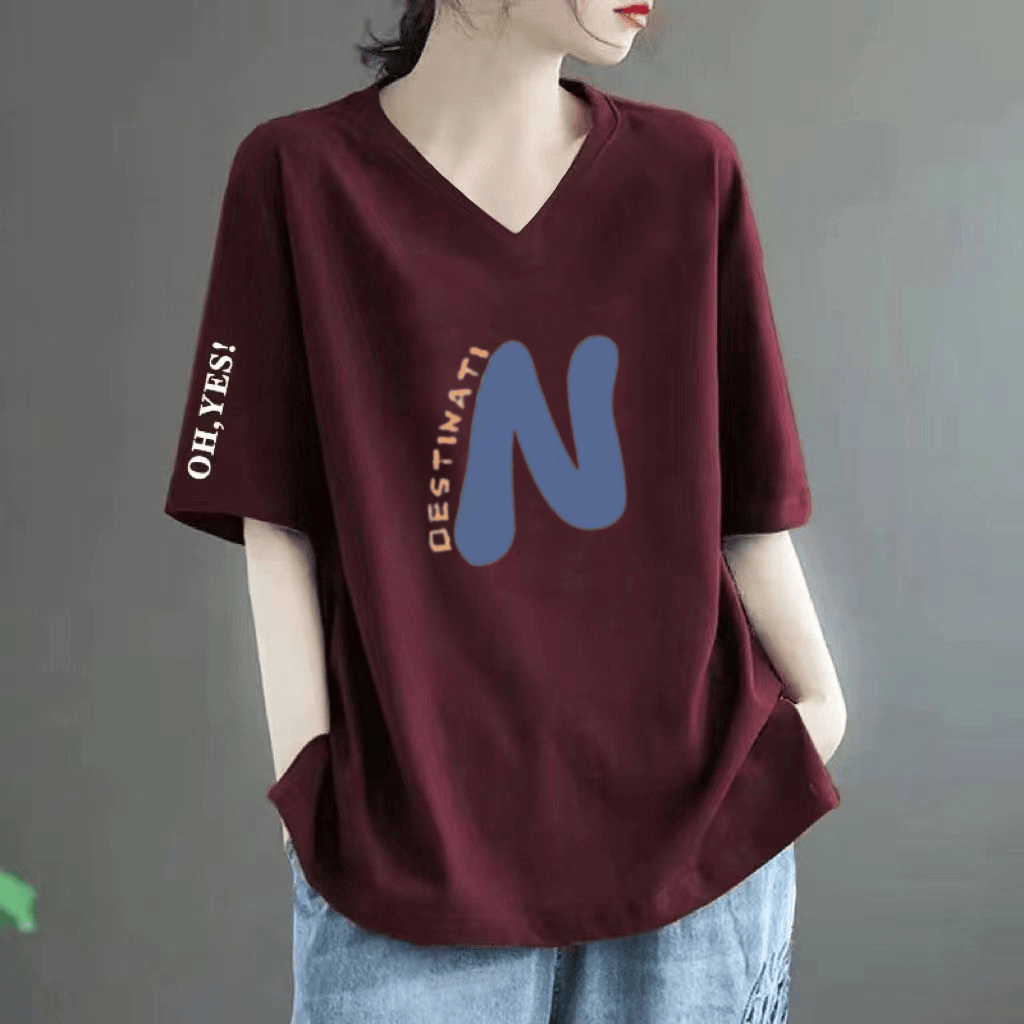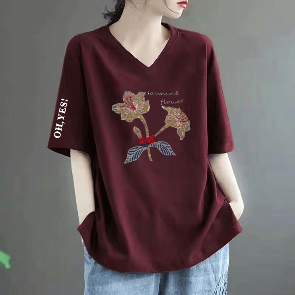 Loose belly-covering printed short-sleeved T-shirt for fat women
