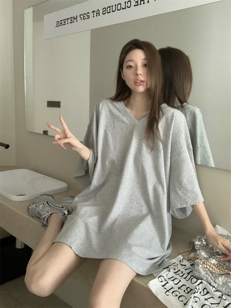 | nameOriginal | Loose, casual and comfortable v-neck short-sleeved summer solid color T-shirt |