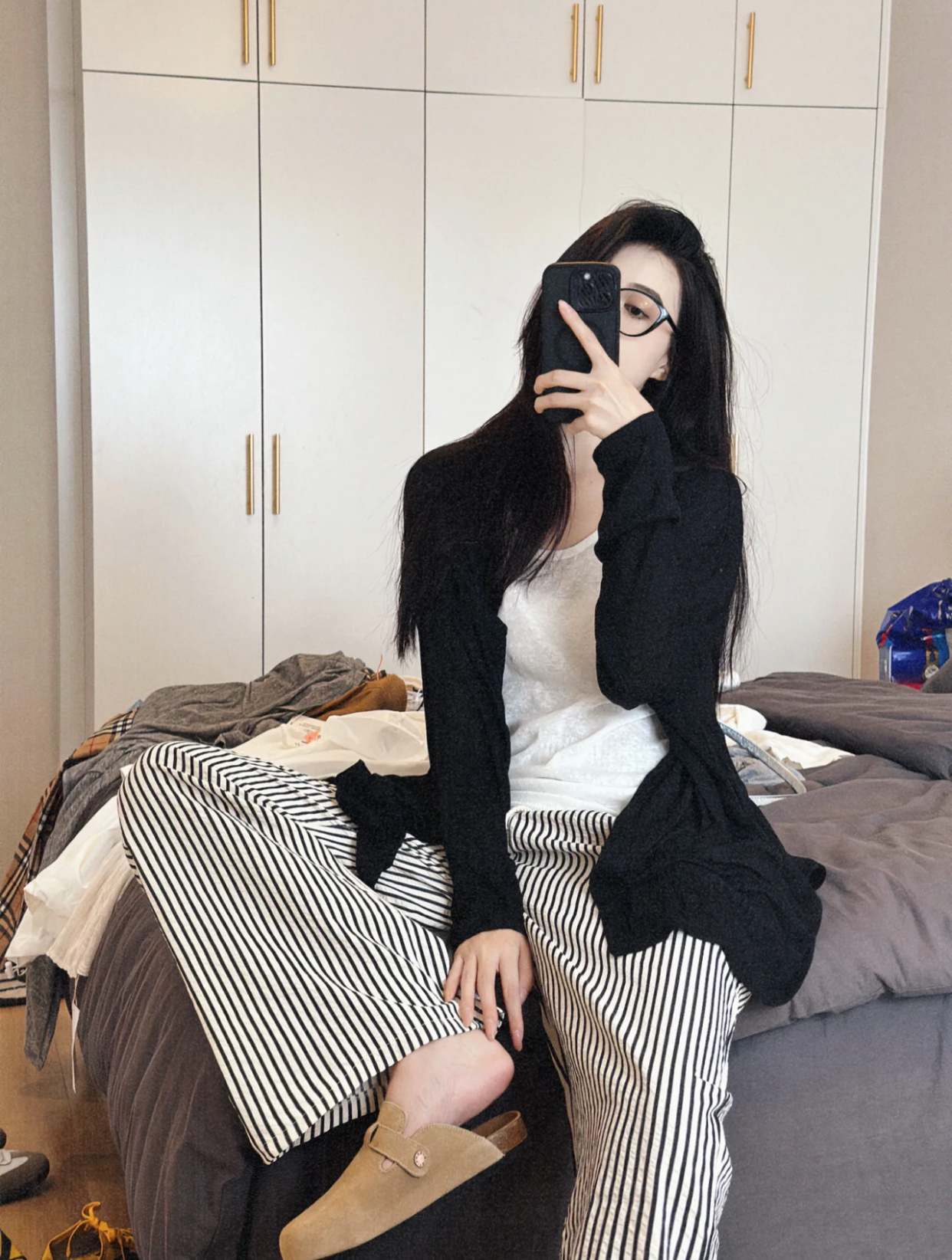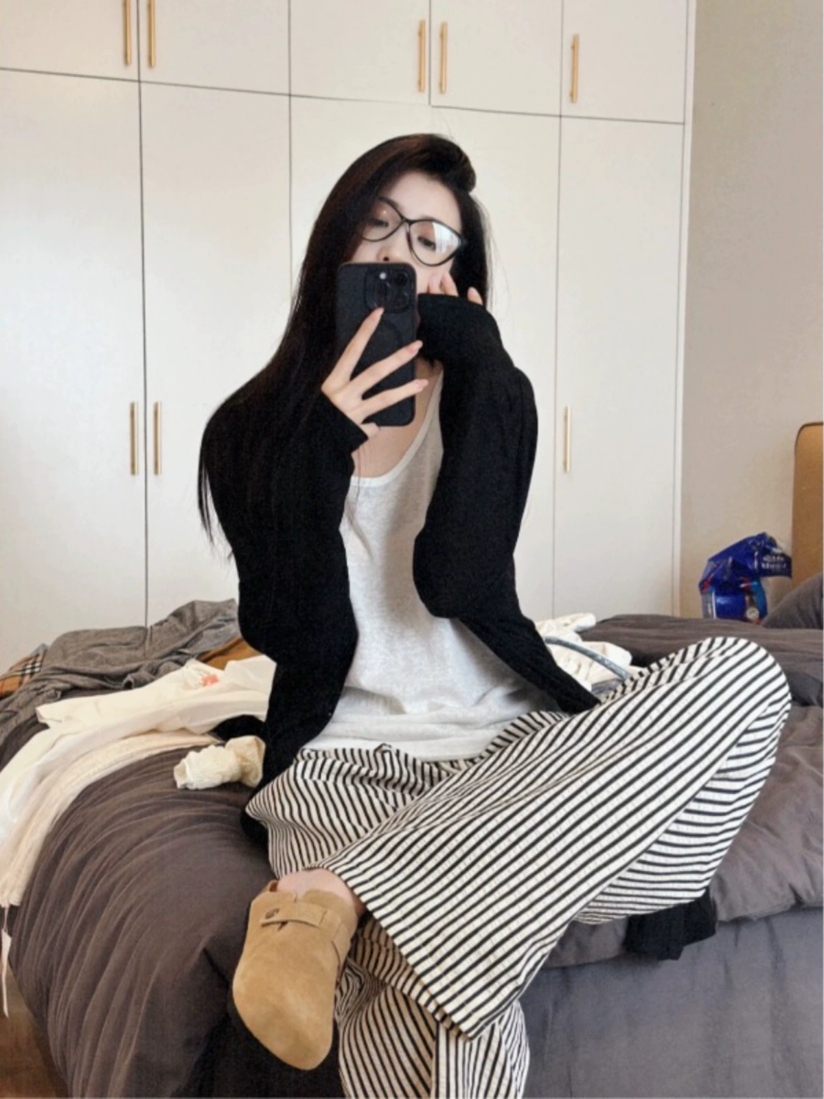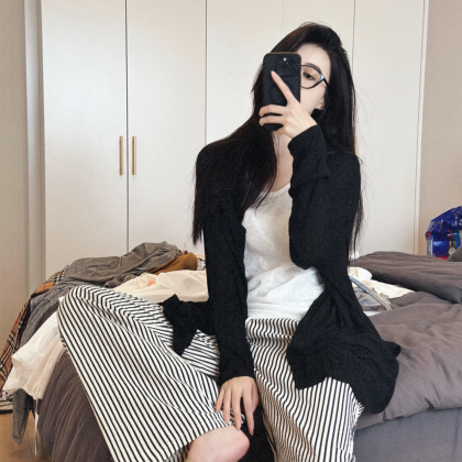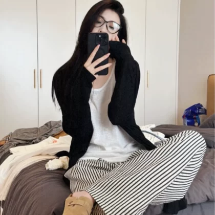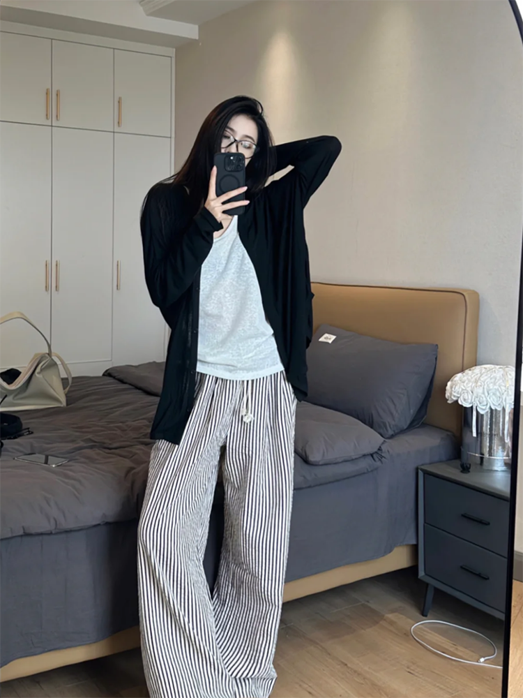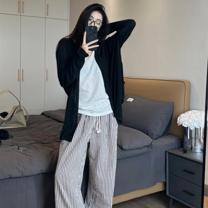 Loose casual bottoming vest striped pants cardigan
