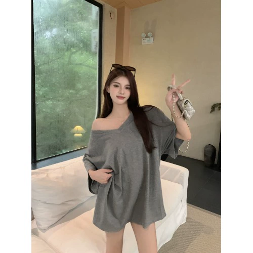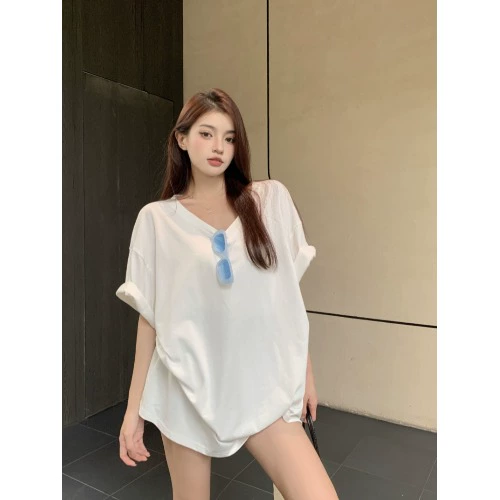 | nameOriginal | Loose casual v-neck short-sleeved summer solid color top T-shirt |