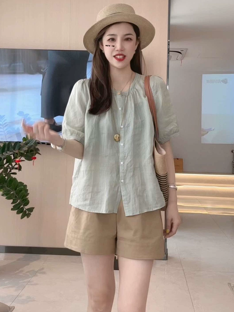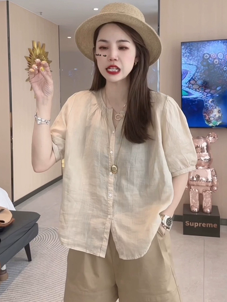 | nameOriginal | Loose, chic and beautiful ramie short-sleeved shirt |