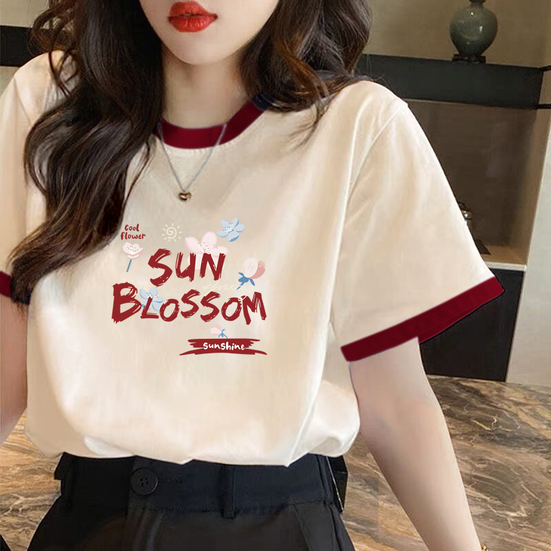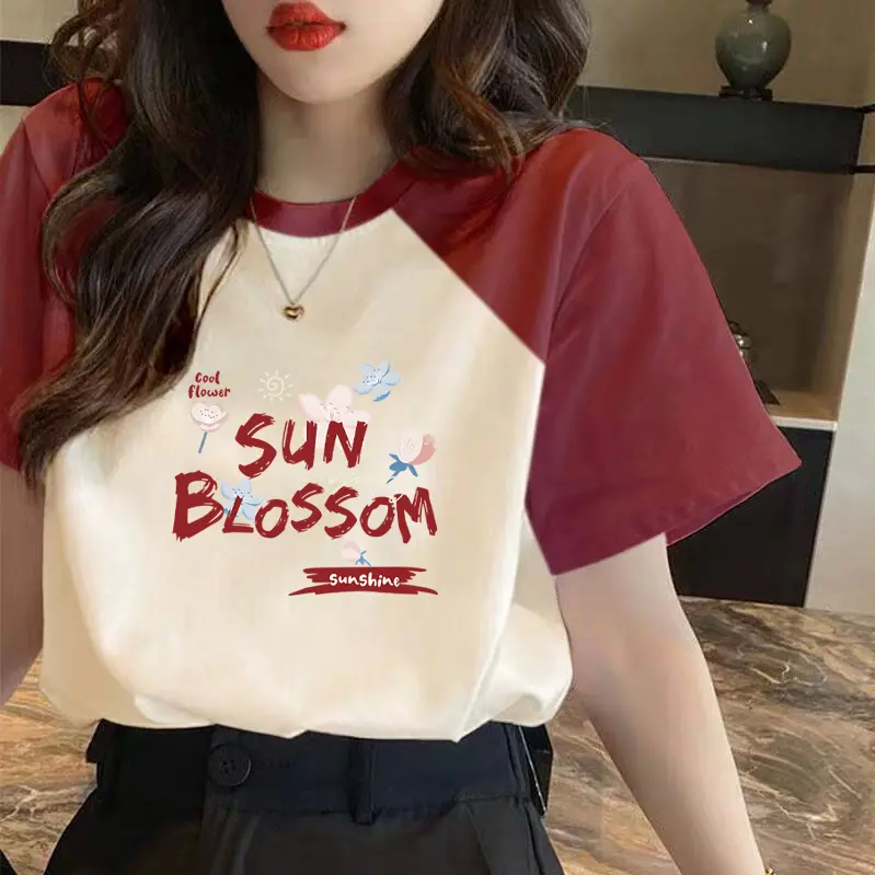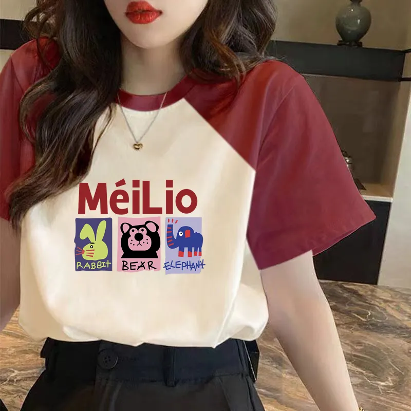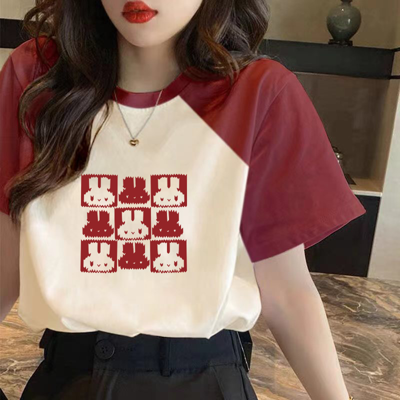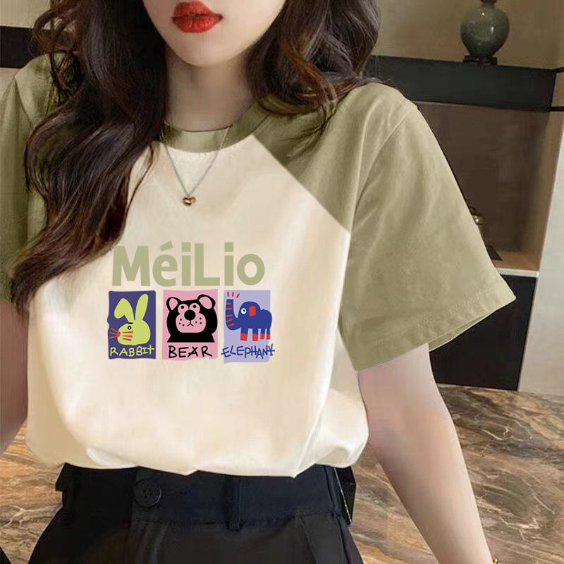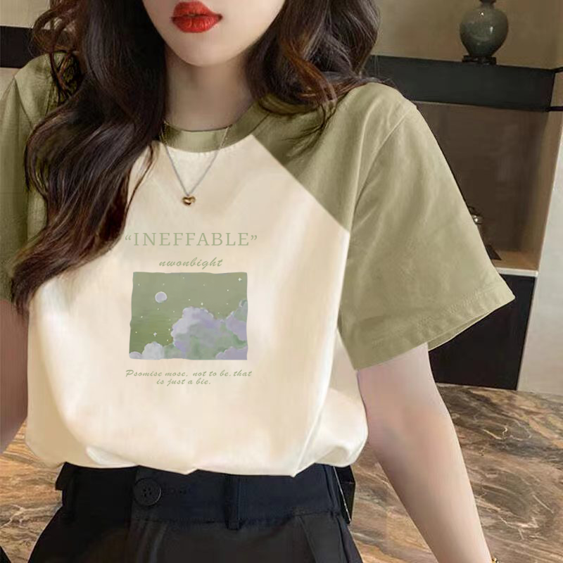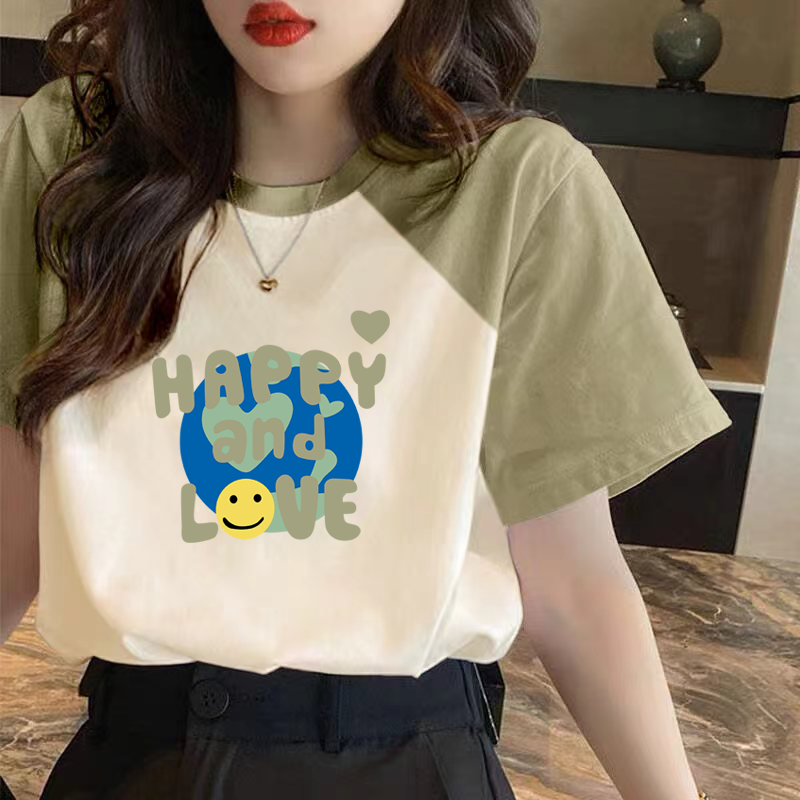 | nameOriginal | Loose contrasting color patchwork niche top short-sleeved T-shirt |