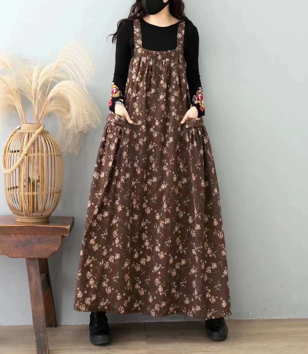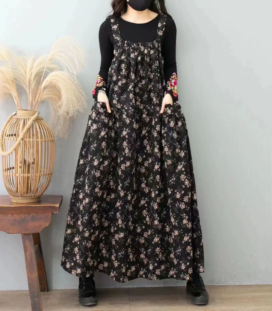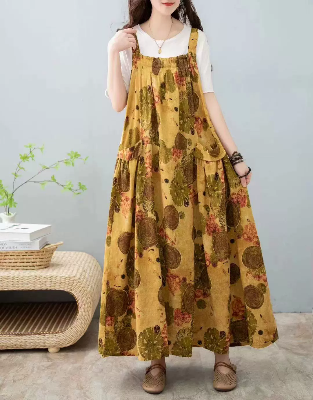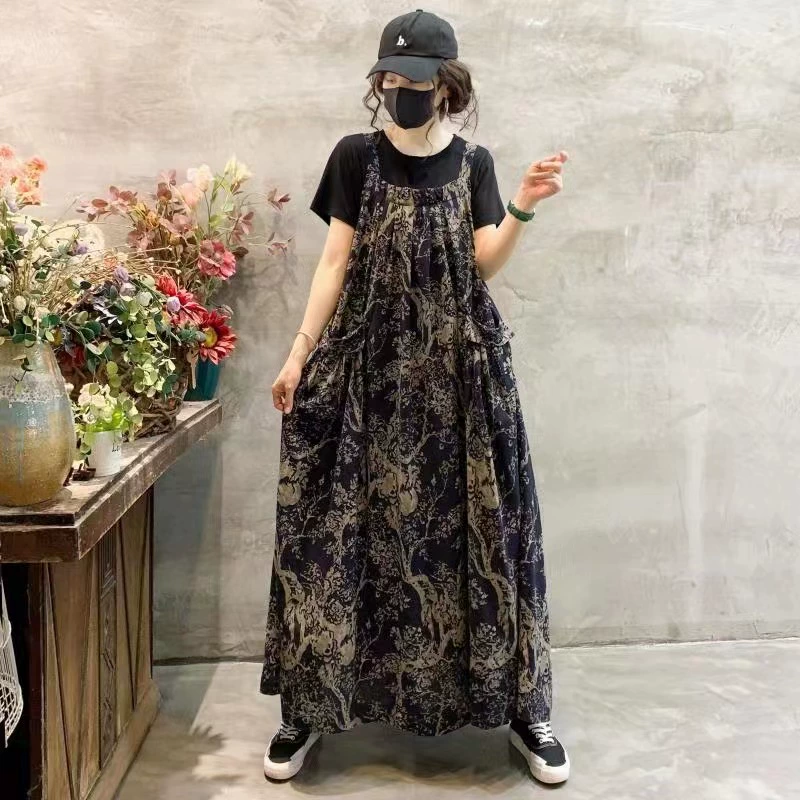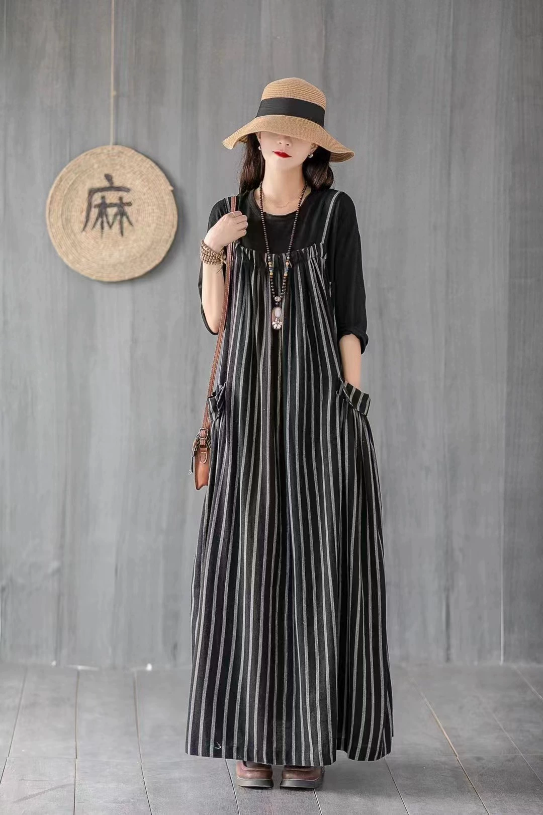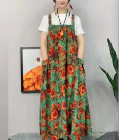 | nameOriginal | Loose cotton and linen ethnic style long suspender dress |