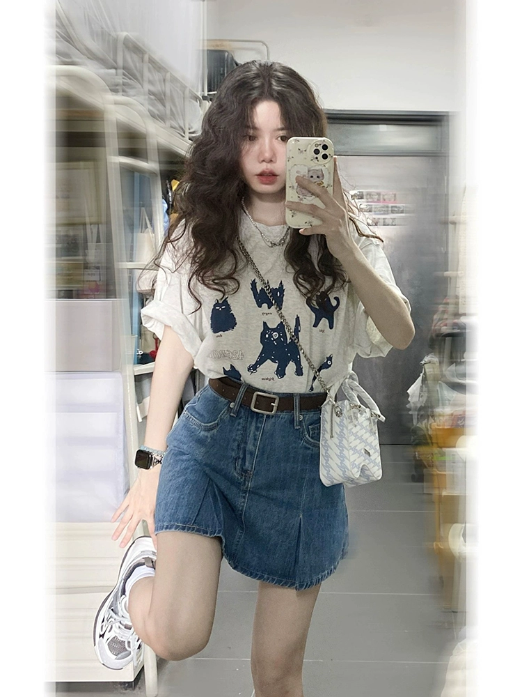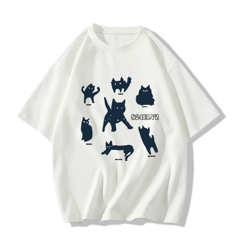 | nameOriginal | Loose cotton short-sleeved T-shirt with retro right-shoulder design |