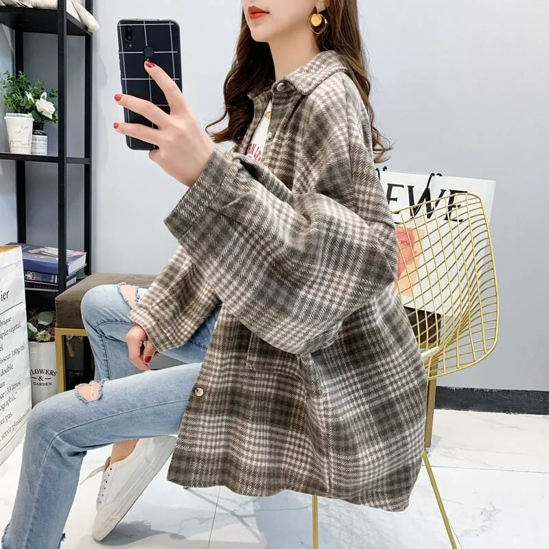 | nameOriginal | Loose design jacket retro Hong Kong style plaid shirt |