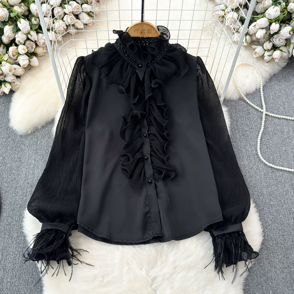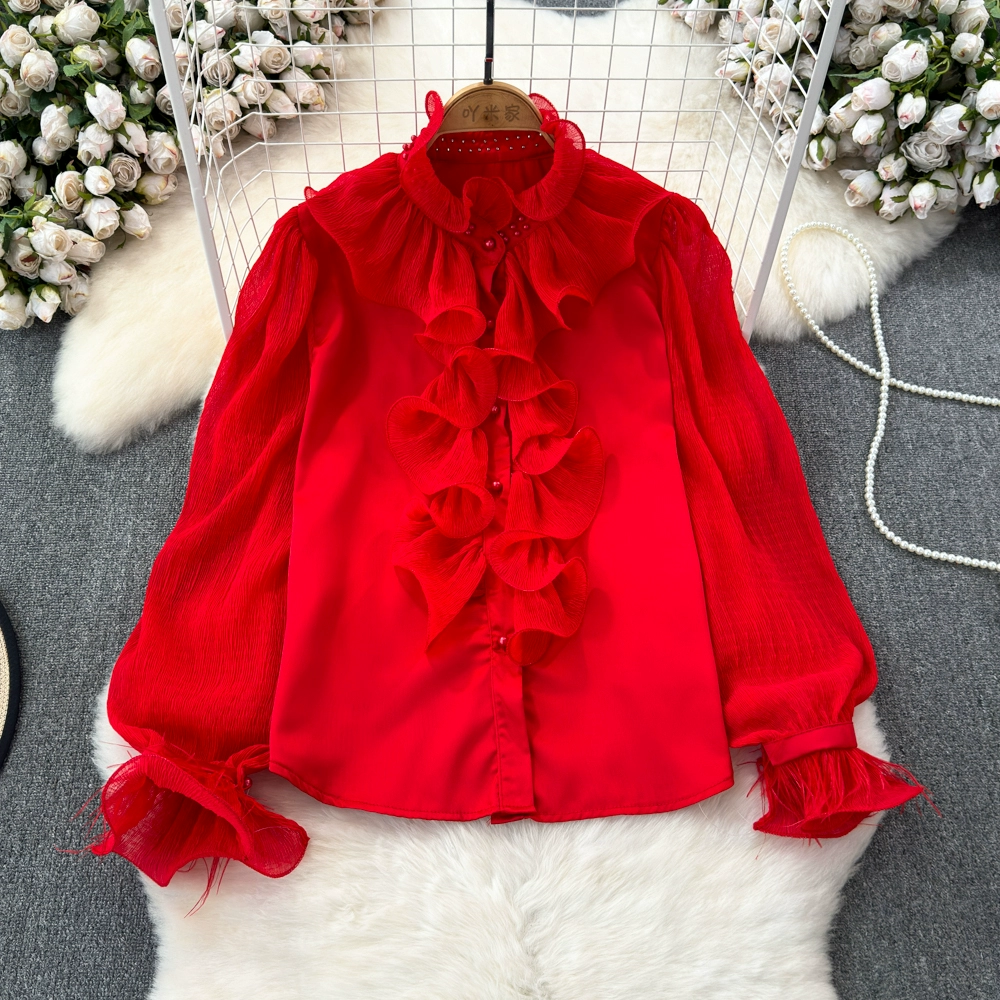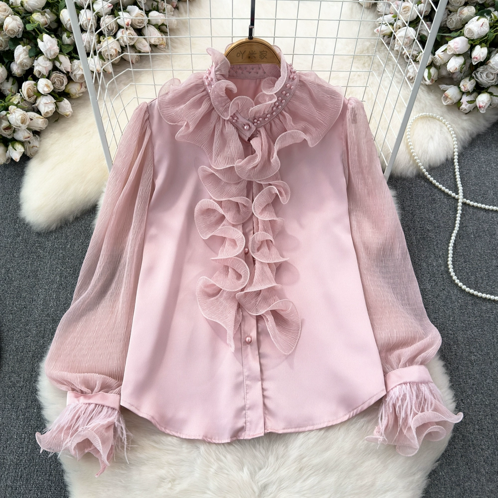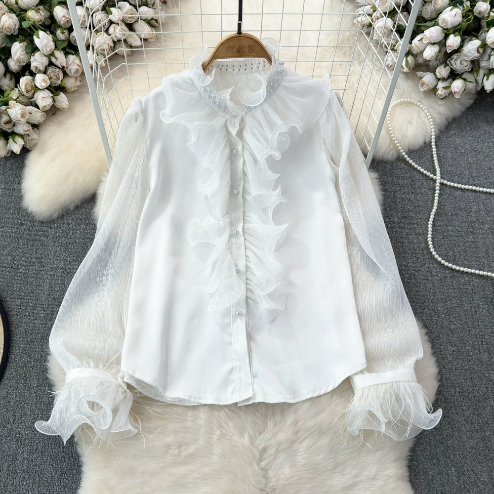 | nameOriginal | Loose earring-trimmed bell-sleeved single-breasted shirt |