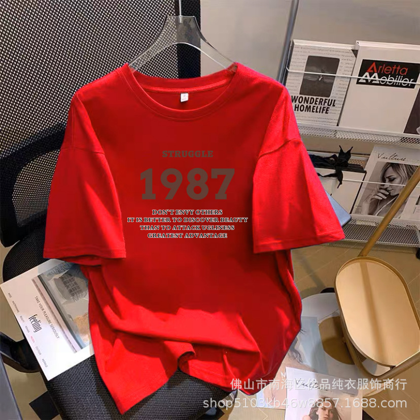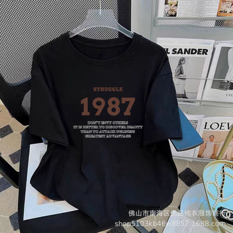 Loose Explosions Short-sleeved T-shirt Women’s 2024 New Round Neck Base Shirt Summer Printed Joker Top Factory Outlet