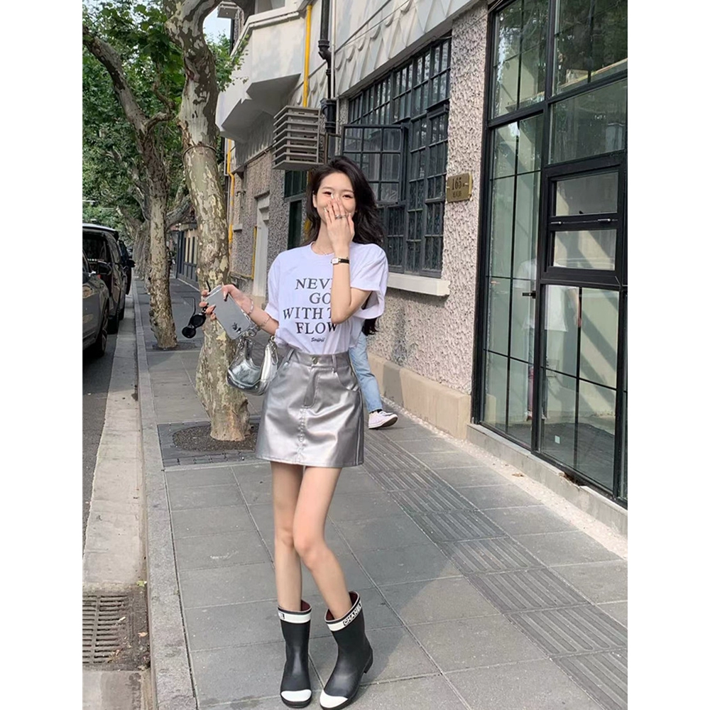 Loose high-waist hip-covering short-sleeved T-shirt with letter print