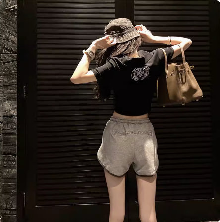 | nameOriginal | Loose high-waisted casual shorts with thin printed silver thread embroidery |