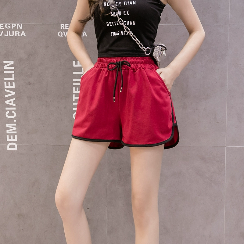 Loose high -waist Korean cotton running sports shorts
