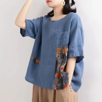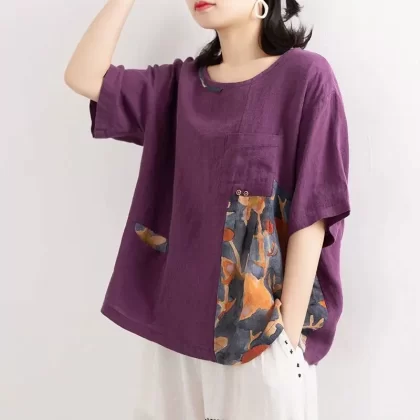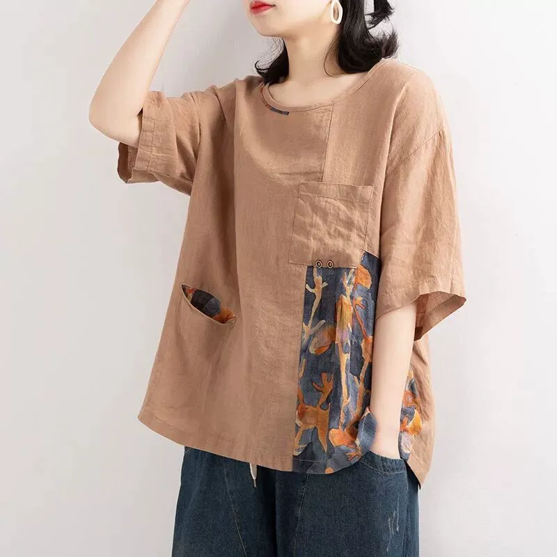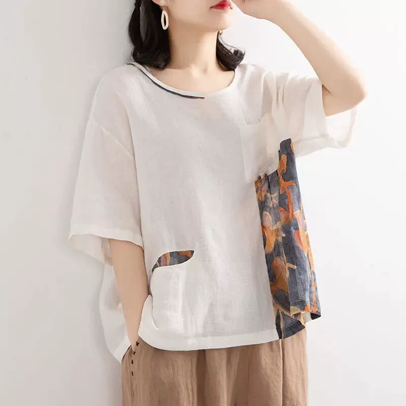 | nameOriginal | Loose irregular patchwork printed linen short-sleeved T-shirt |