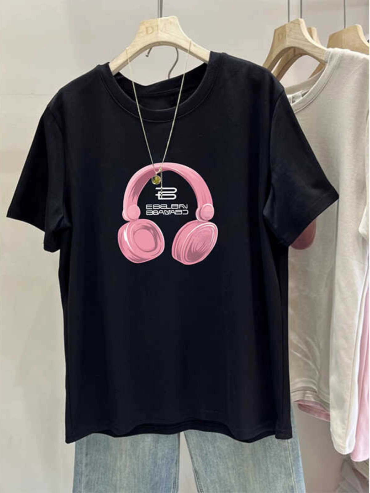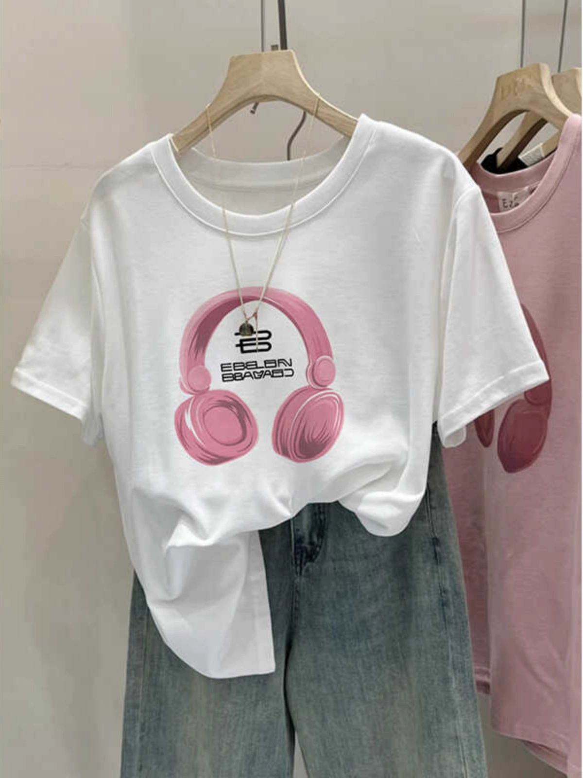 Loose Korean style simple fashion printed short-sleeved T-shirt