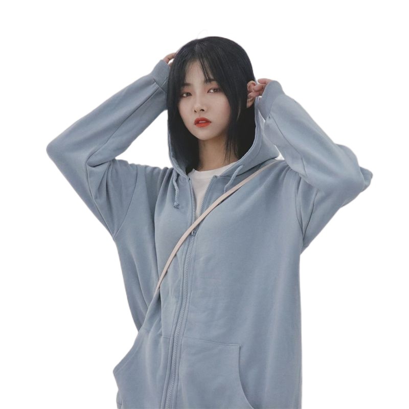 Loose Korean-style Top 2022 New Autumn Lazy Style Solid Color Zipper All-match Hooded Long-sleeved Sweatshirt Jacket for Women