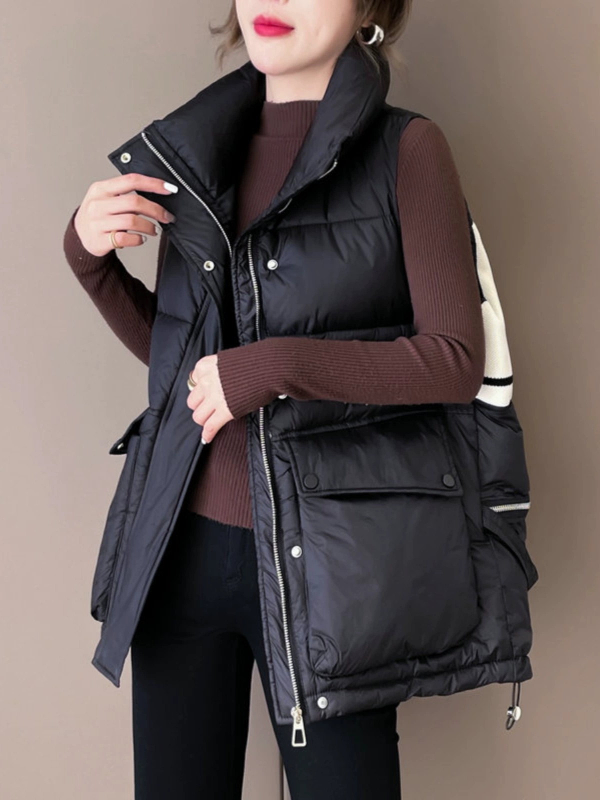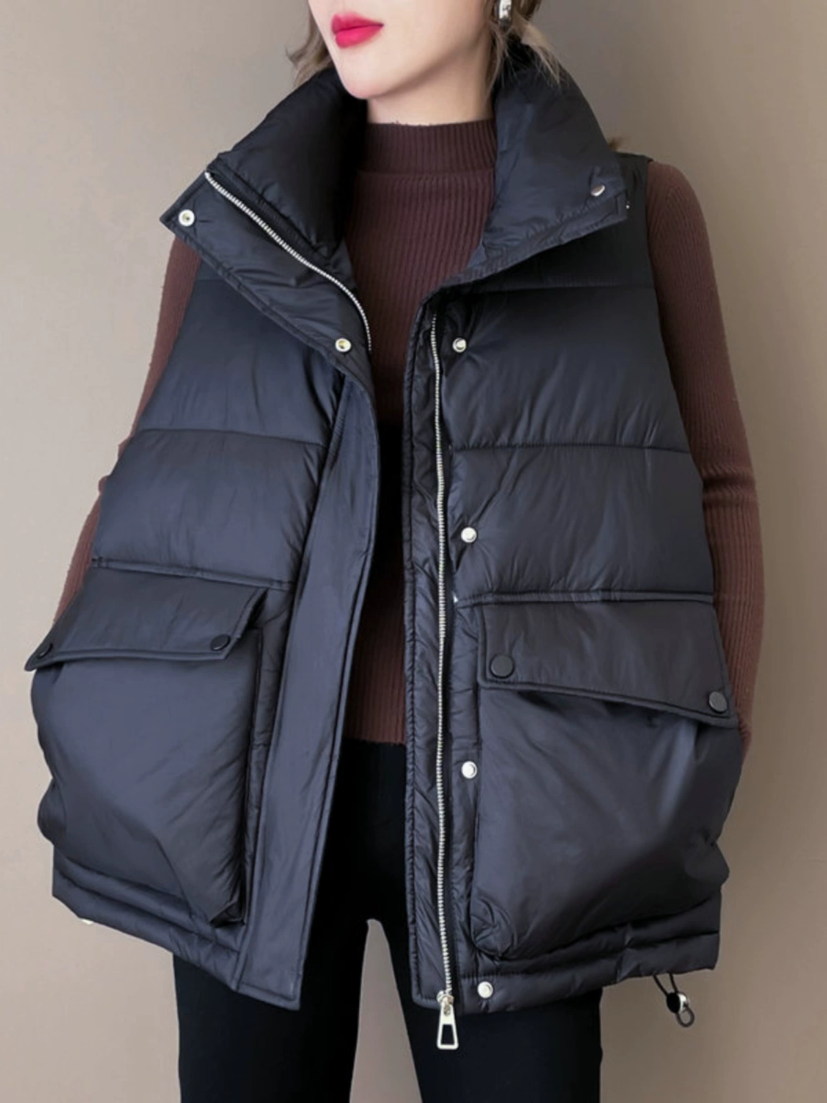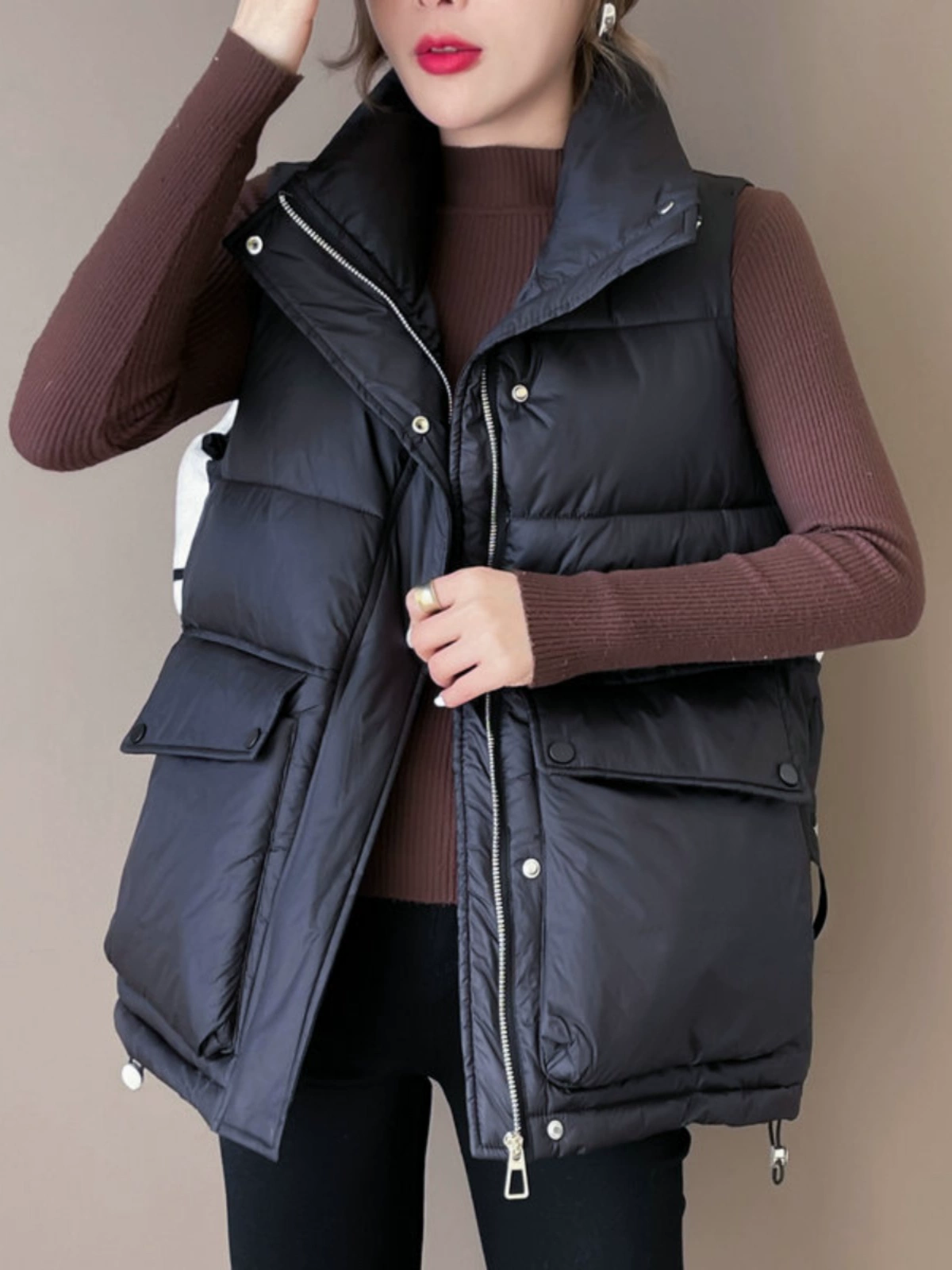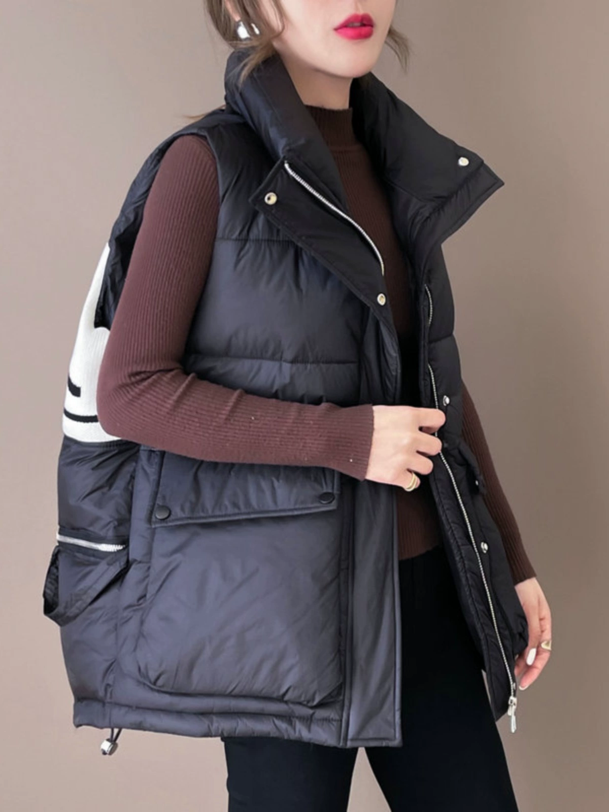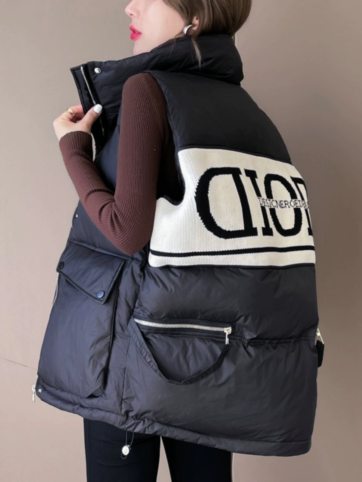 Loose large size bright noodles free washing down cotton pama female 2024 autumn and winter new versatile thickened vest, shoulder jacket